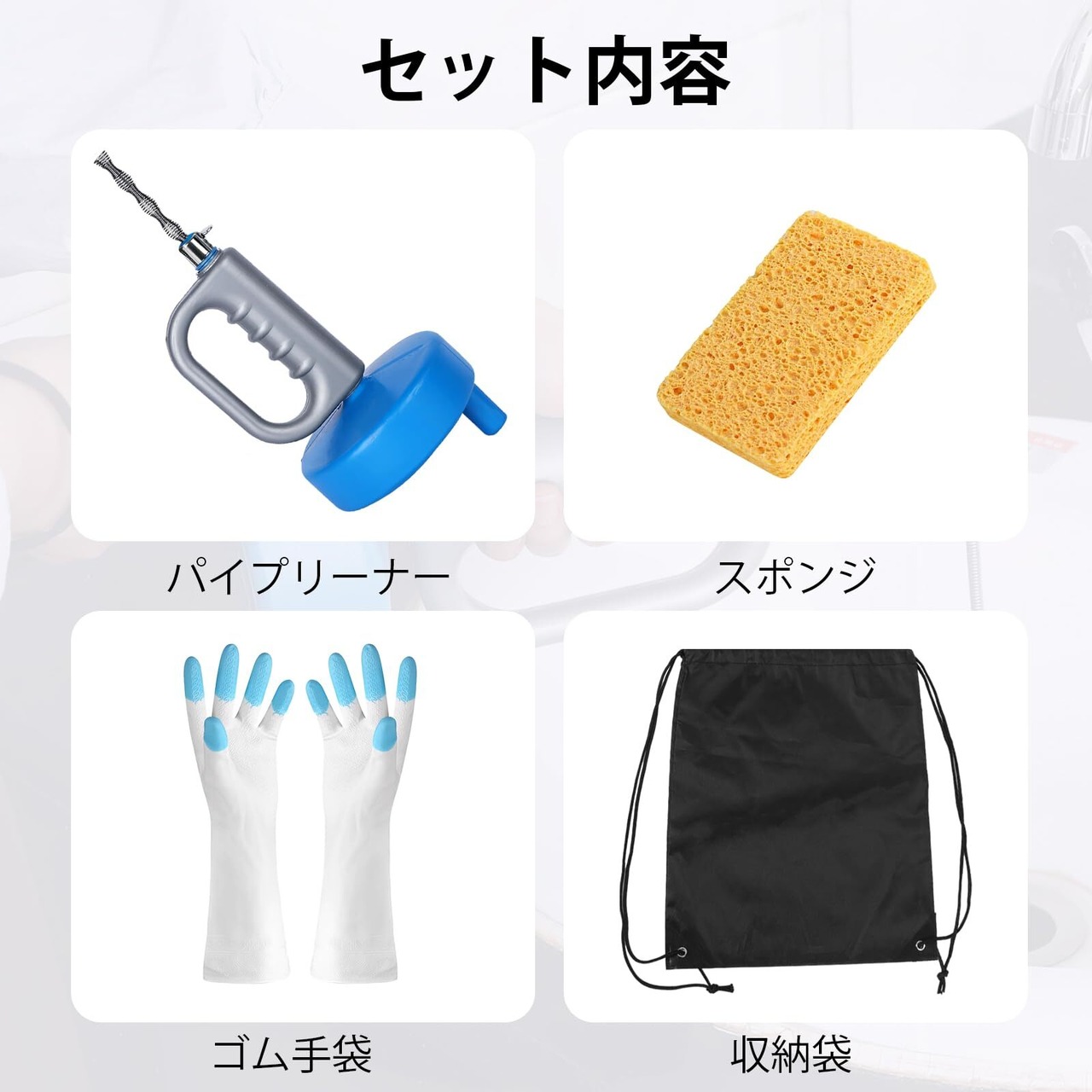 【機能性抜群&コンパクトで清潔に保管】排水口つまりワイヤーには手袋、スポンジ、収納袋が付属しているので、手を綺麗に保てるだけでなく、パイプクリーナーワイヤーをきちんと収納できます。