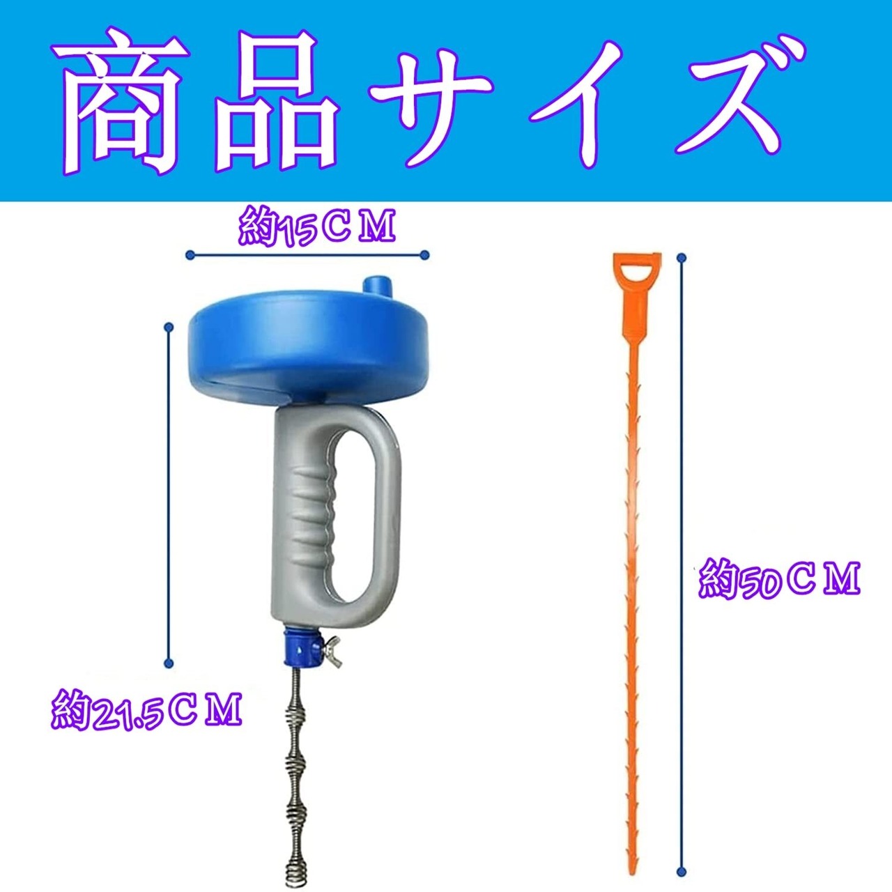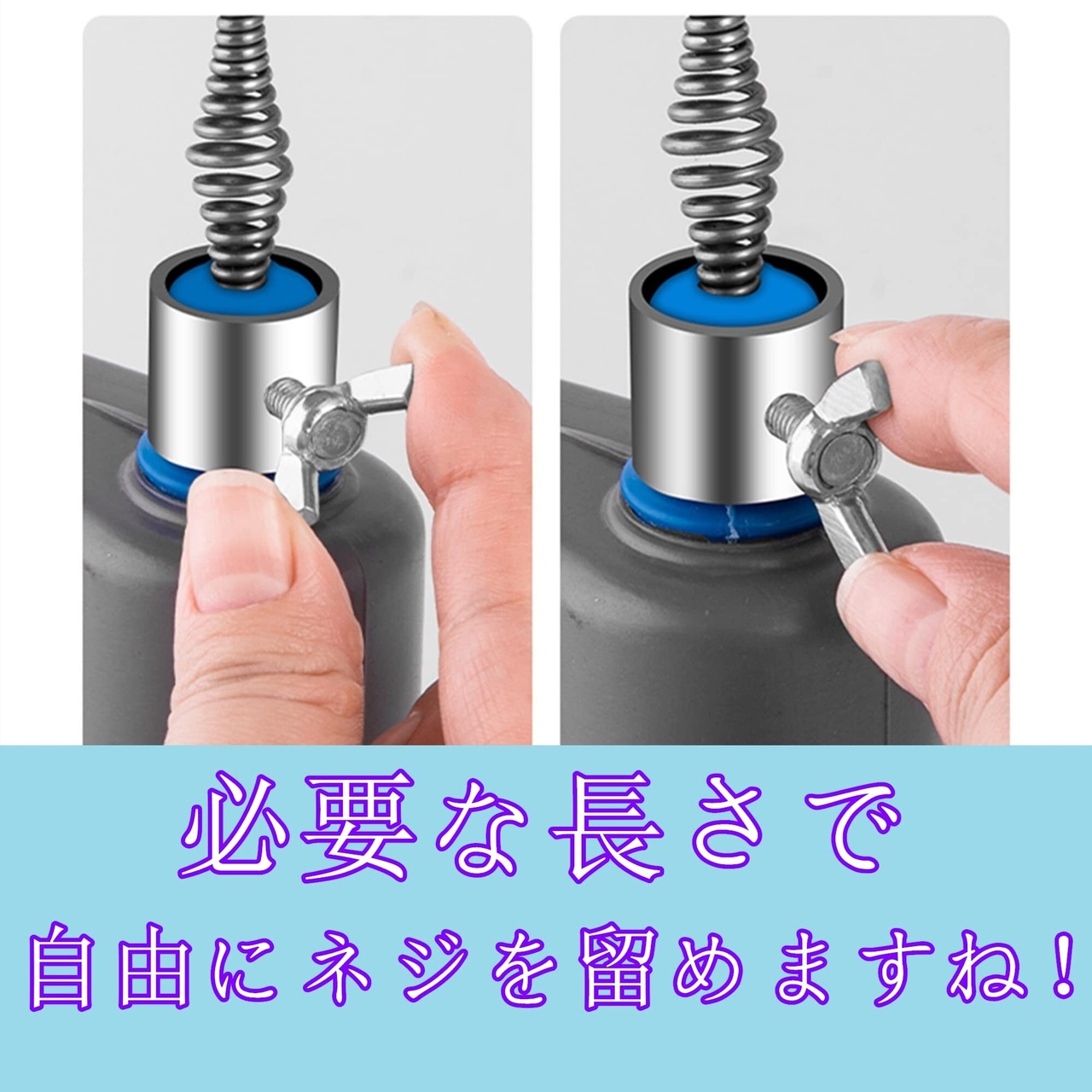 回転式 パイプクリーナー 5m ワイヤー50CM 詰まり取り お風呂 トイレ 洗面所 キッチン 排水口 下水 修理 解消 (5M)