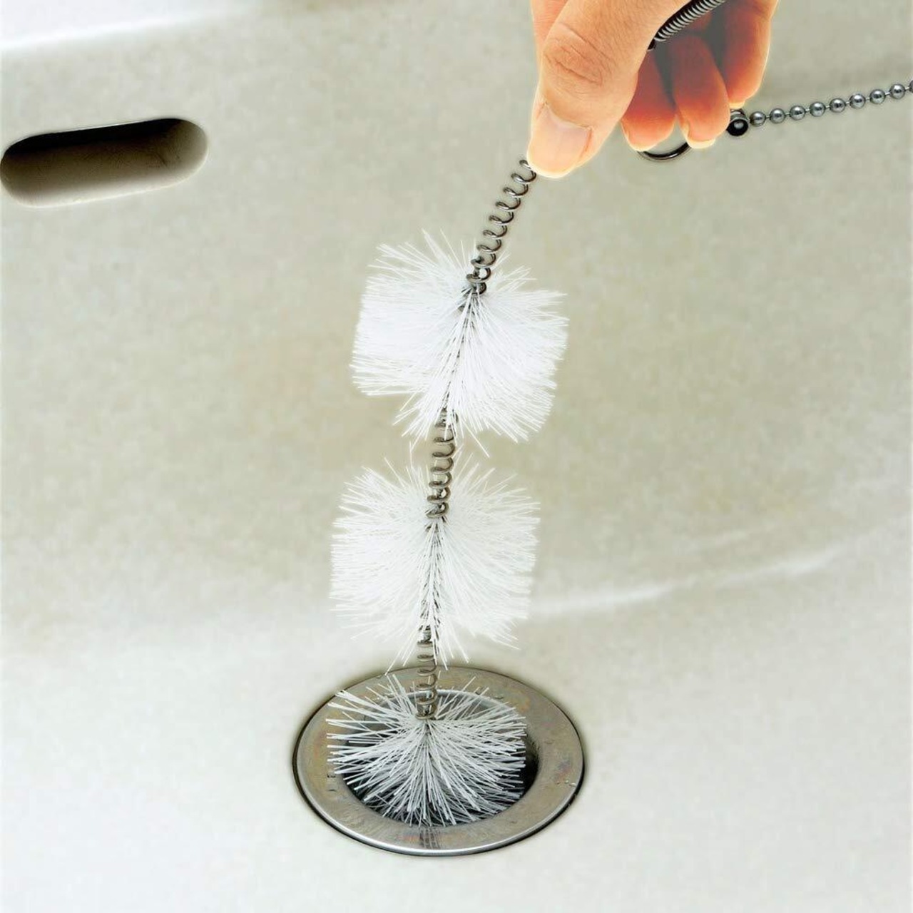 【排水パイプに】流し台・洗面台などの排水パイプの詰まり取りに。ブラシを回転させると、パイプの中で前後左右に移動でき、まんべんなくお掃除できます。排水口の入り口付近のヌメリ取りにも便利です。