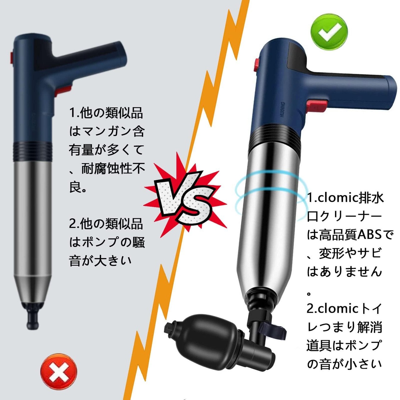 【電動式 トイレつまり解消道具】従来の手動タイプと比較して、より効率的で便利であり、お年寄りや女人でも手間をかけずに手軽にご使用いただけます。使い方は簡単です。2回ボタン押すだけ、一回目押して空気を溜めて、二回目押しつまり解消。(日本語説明書付き)