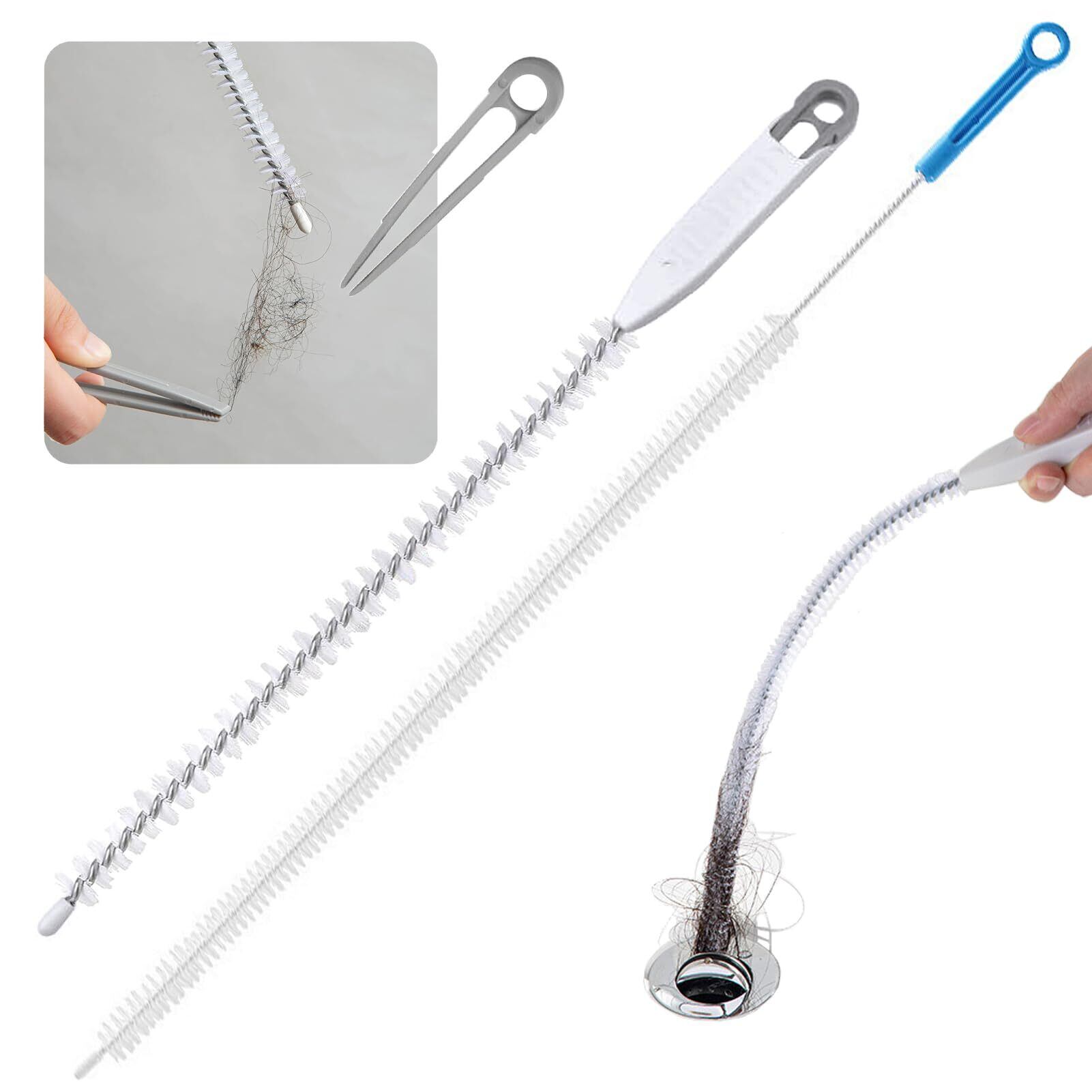 【曲げられる柔軟性】当社の排水管クリーナーは、高品質のPPハンドル、金属シャフト、耐摩耗性毛で作られています。 適度な柔らかさと硬さのシャフトとスパイラル構造の毛先デザインにより、ゆっくり回転させることで詰まりを引っ掛けることができ、深い曲管の清掃も簡単に行えます。