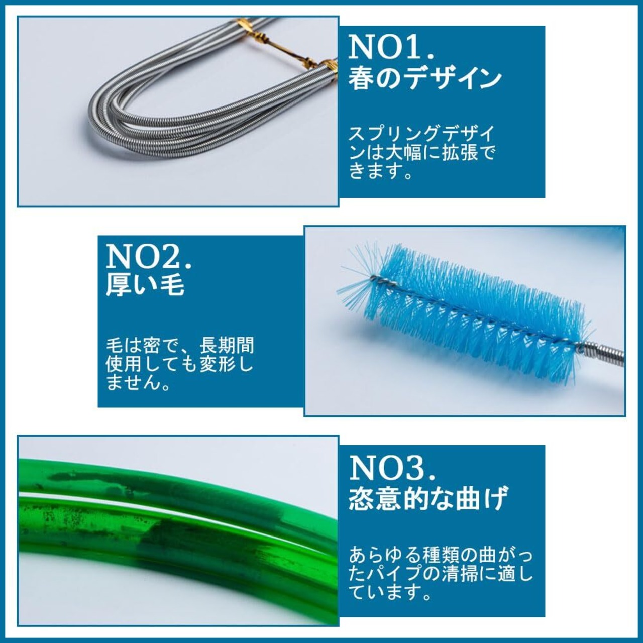 【商品紹介】 スプリングデザインを採用した拡張性の高い水道管清掃ブラシ。密なナイロン毛とステンレス鋼スプリングを組み合わせ、曲がりくねったパイプや狭い開口部の清掃に最適。長期間使用しても変形せず、頑丈な耐久性を実現。