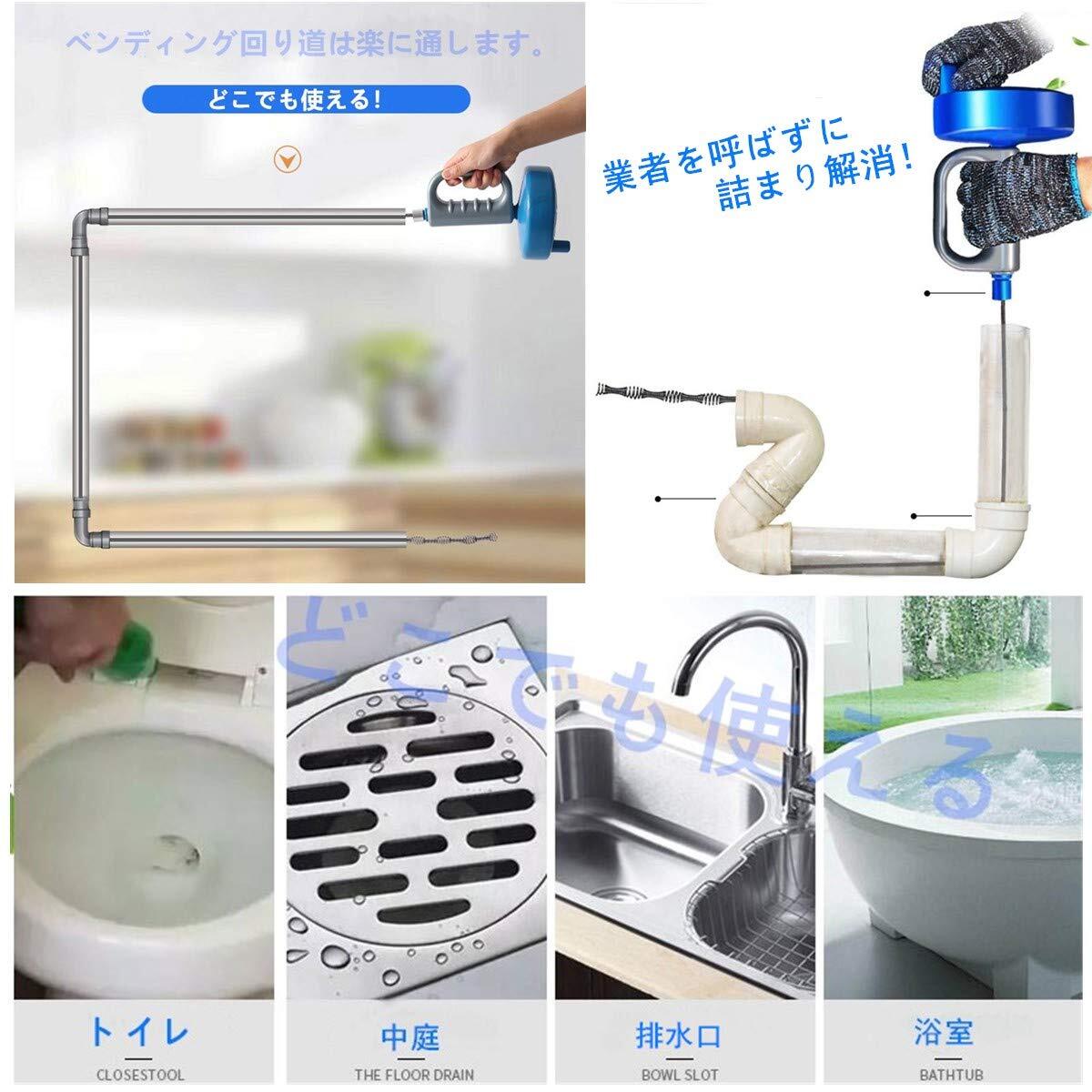 【特価セール】Kuroobaa パイプクリーナー ワイヤー 排水溝 つまり 回転式 5m 収納袋付き