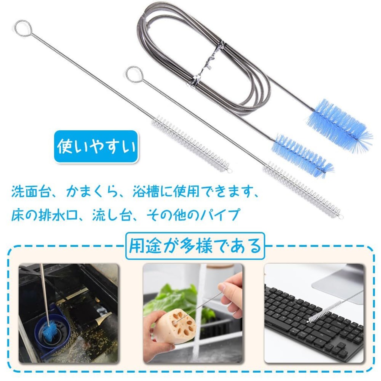 パイプブラシ 排水管 掃除 3個入り 排水溝 ブラシ パイプクリーナー 折り曲げ 柔軟 詰まり取り キッチン/詰まり/風呂用 ステンレス製