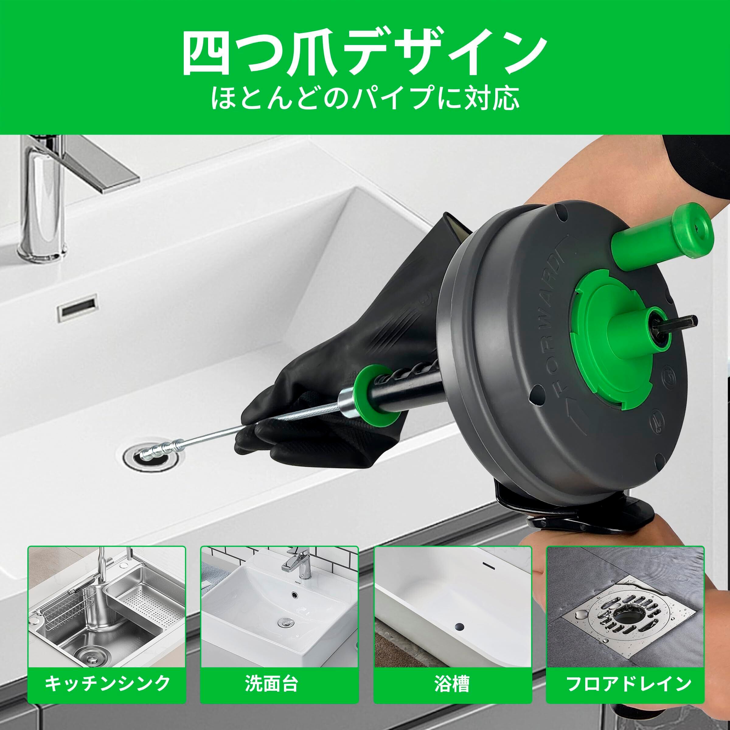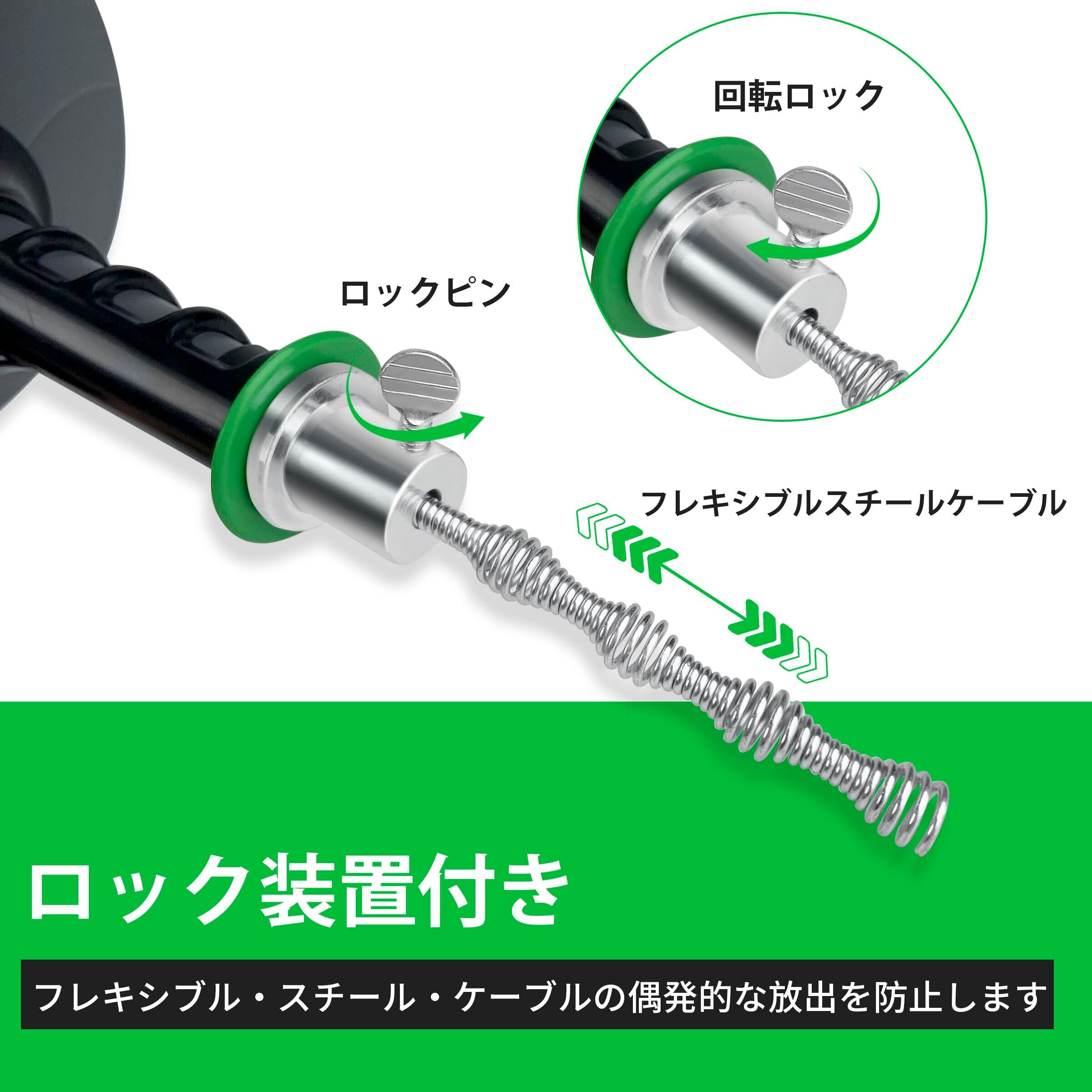 プロ仕様の排水管クリーナー:762cmの頑丈なスチール製ケーブルで、様々な家庭用排水管の頑固な詰まりを効果的に除去。