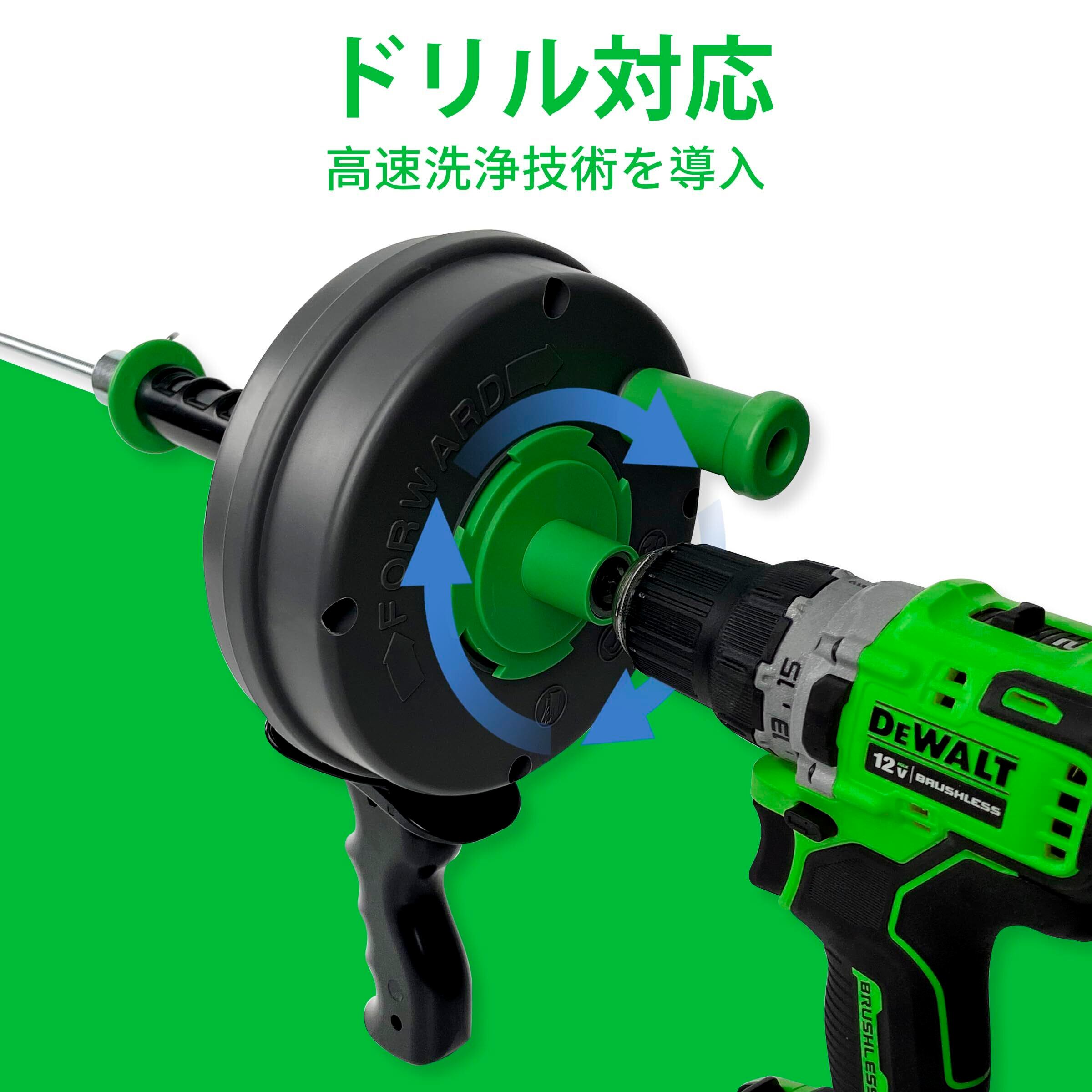 BACOENG 排水管 掃除 ワイヤー パイプクリーナー ワイヤー7.6m ドリルアダプター付 配管 詰まり ワイヤー 手動&電動両用 - シャワー/シンクの配管 詰まり 解消に - 手袋&収納バッグ付き(グリーン)