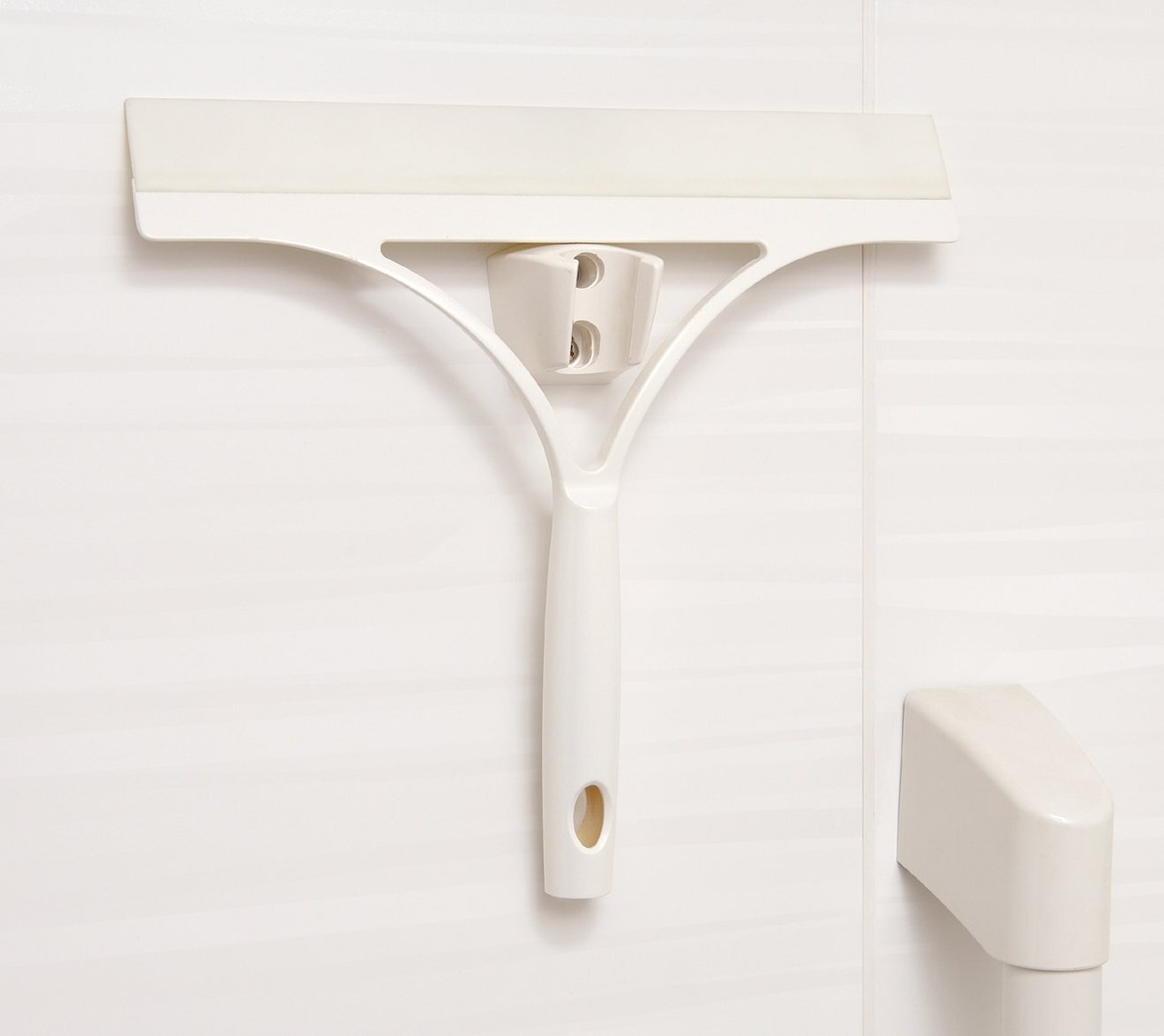 シャワーフックに掛けて収納することができます。シャワーフックにスクイジーをかけたまま、シャワーヘッドを取り付けることもできます。