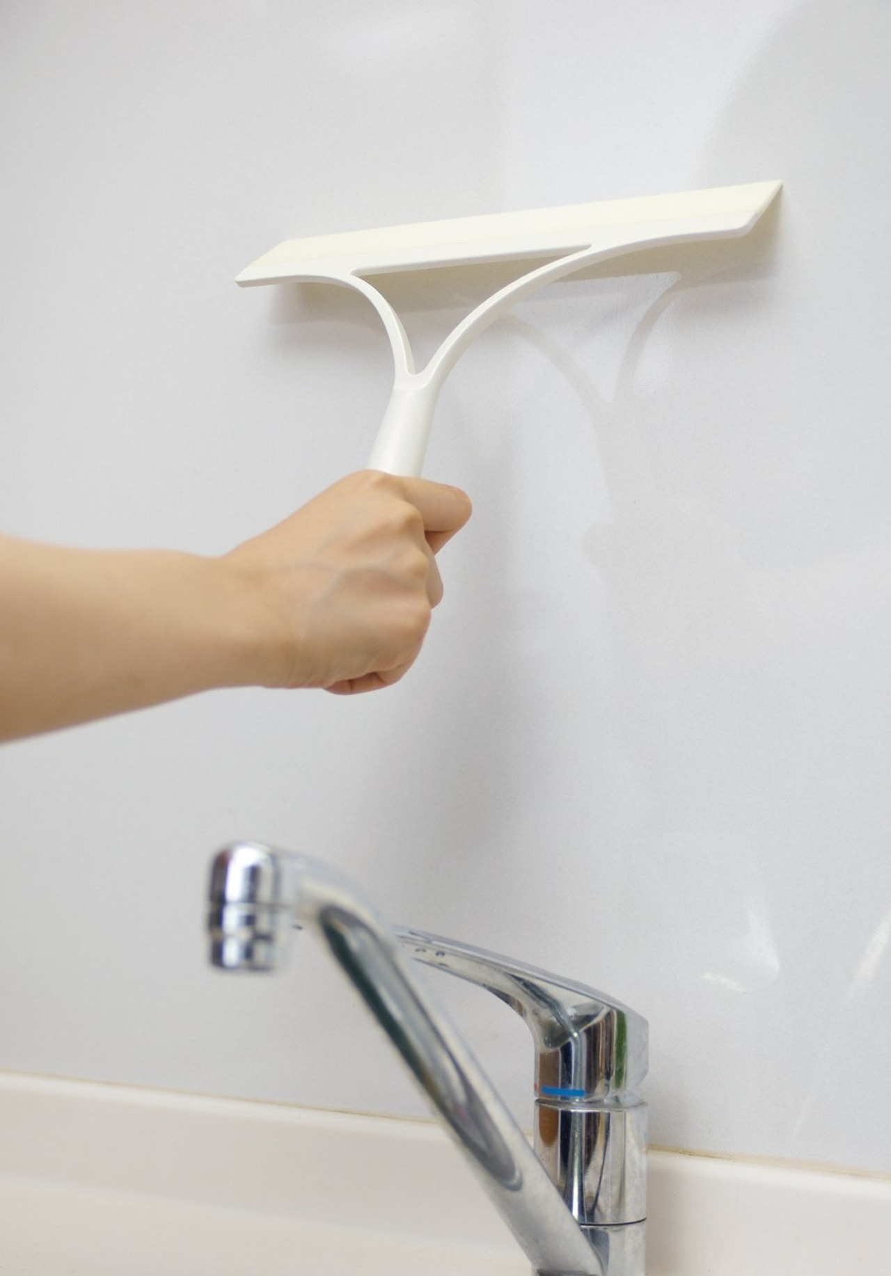 お風呂の壁や天井、鏡の水滴を簡単にしっかり水切り。水垢汚れやカビを防ぐことができます。