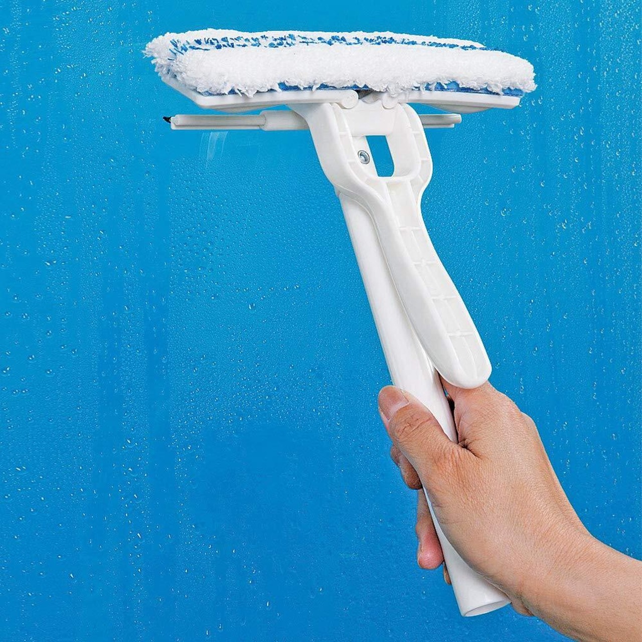 【窓も網戸も洗剤を使わずにお掃除できる】モップに「マイクロファイバー(極細繊維)」を使用。繊維1本1本が多角形構造になっているため、洗剤を使わずに汚れをかき取ることができます。マイクロファイバーとブラシ繊維が網戸の目に入り込むので網戸の汚れはもちろん、窓ガラスについた皮脂・泥などの汚れもキレイにかき取ります。ガラスをキレイに仕上げる水切りゴム付き。女性の方でも軽々お掃除できます。