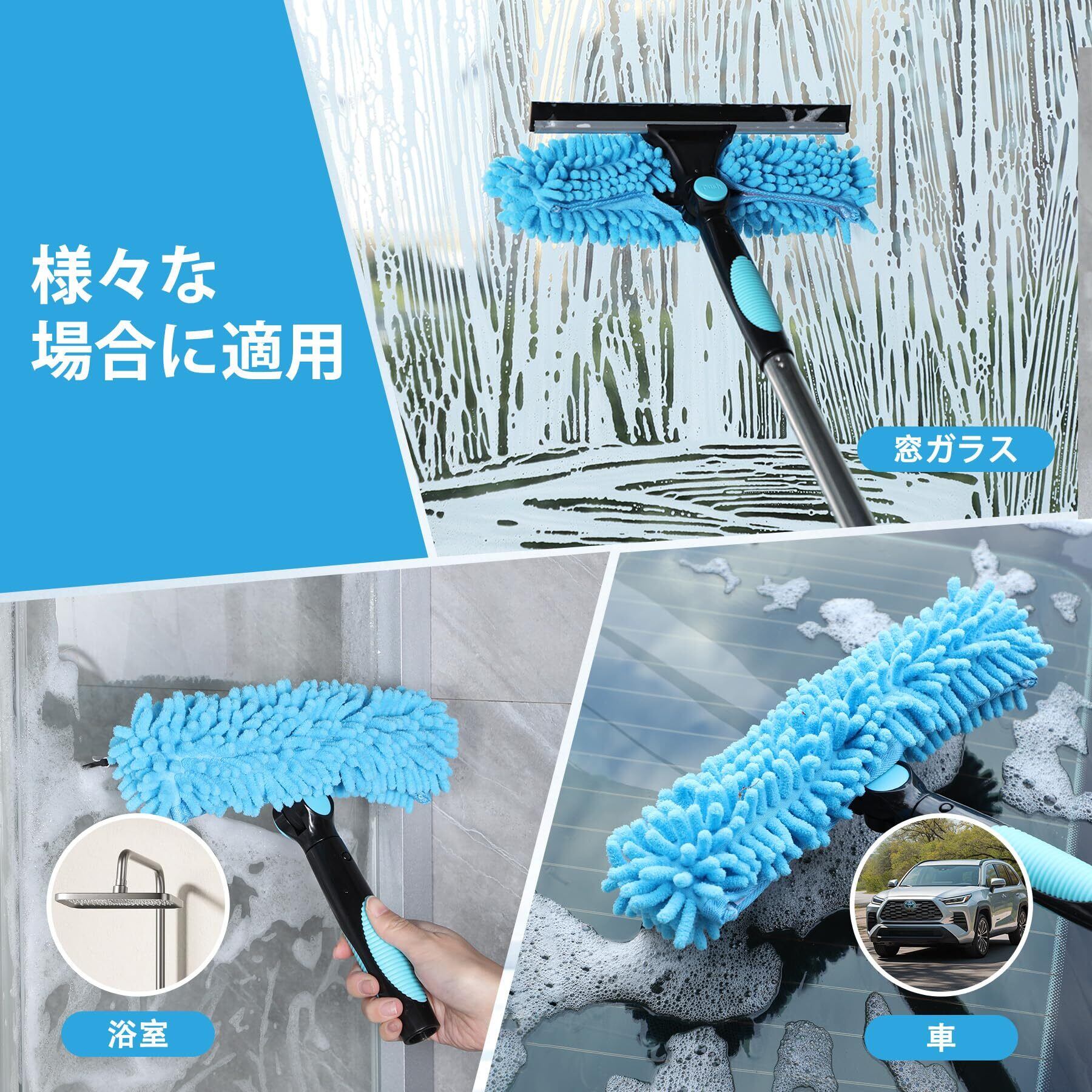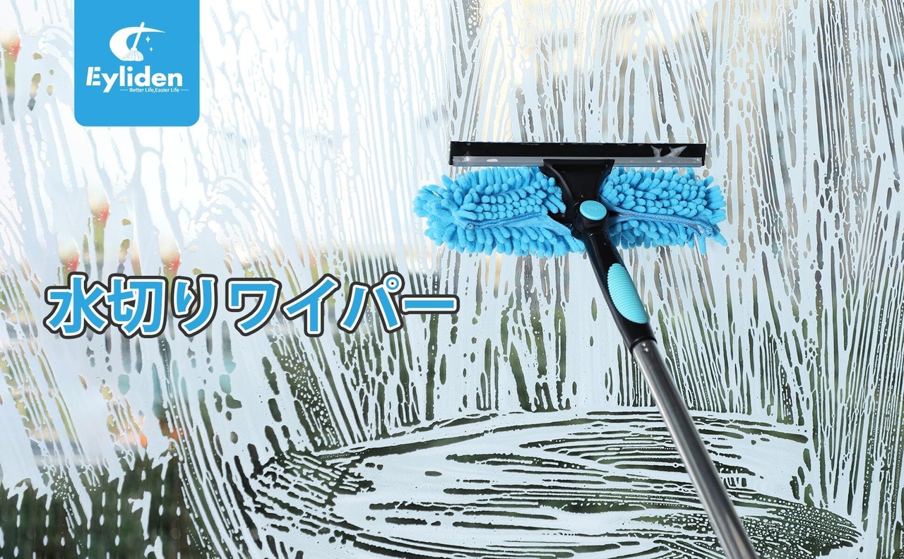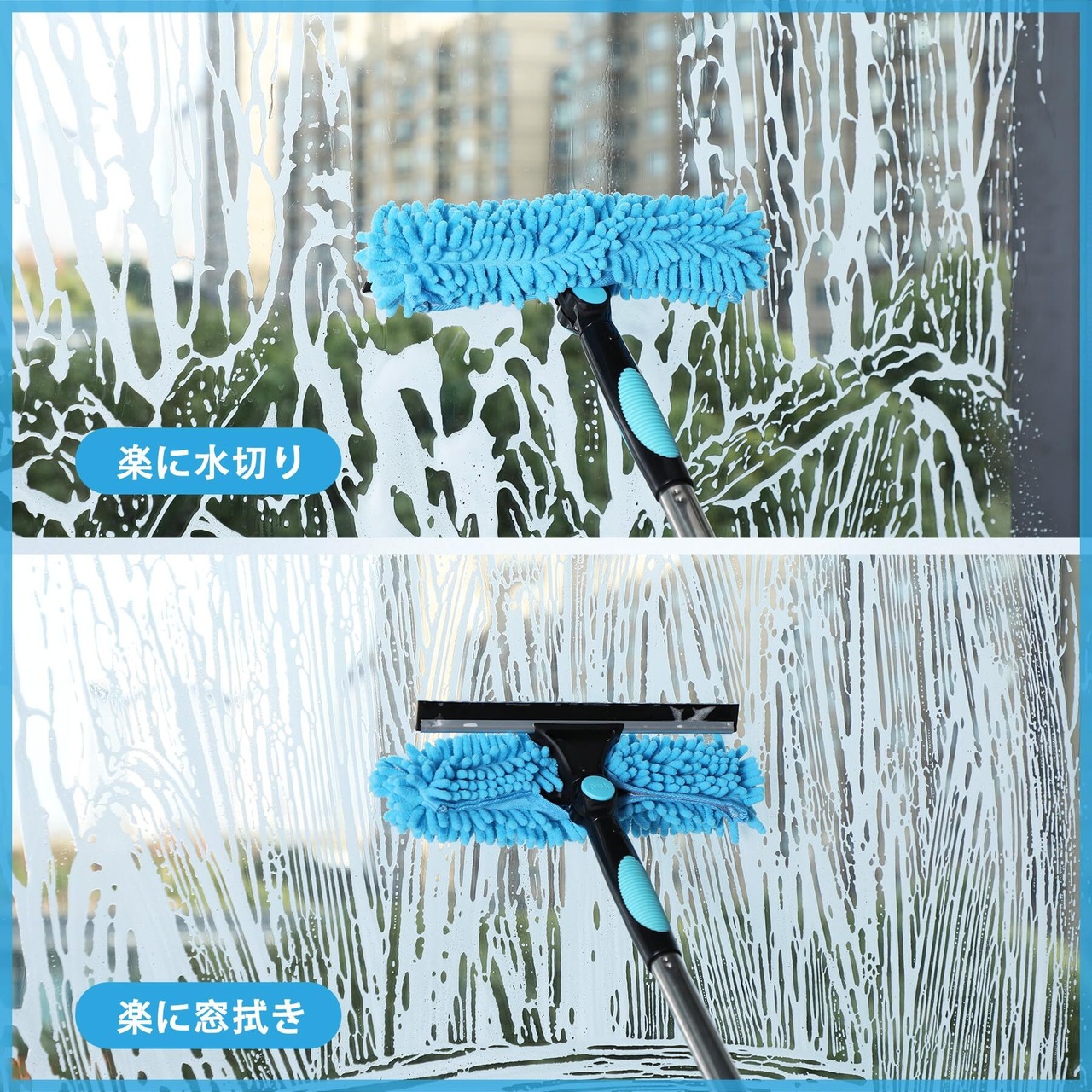 Eyliden 水切りワイパー スクイジー ドライワイパー ガラスワイパー 結露取り 窓ガラス掃除 窓掃除 高所掃除 ガラスクリーナー 窓拭き 180°回転 約165cm伸縮可能 延長ポール付き ワイパー 網戸掃除ローラー シェニール&マイクロファイバークロス各1枚 風呂 ガラス 壁 鏡 天井 窓 壁など(ブルー)