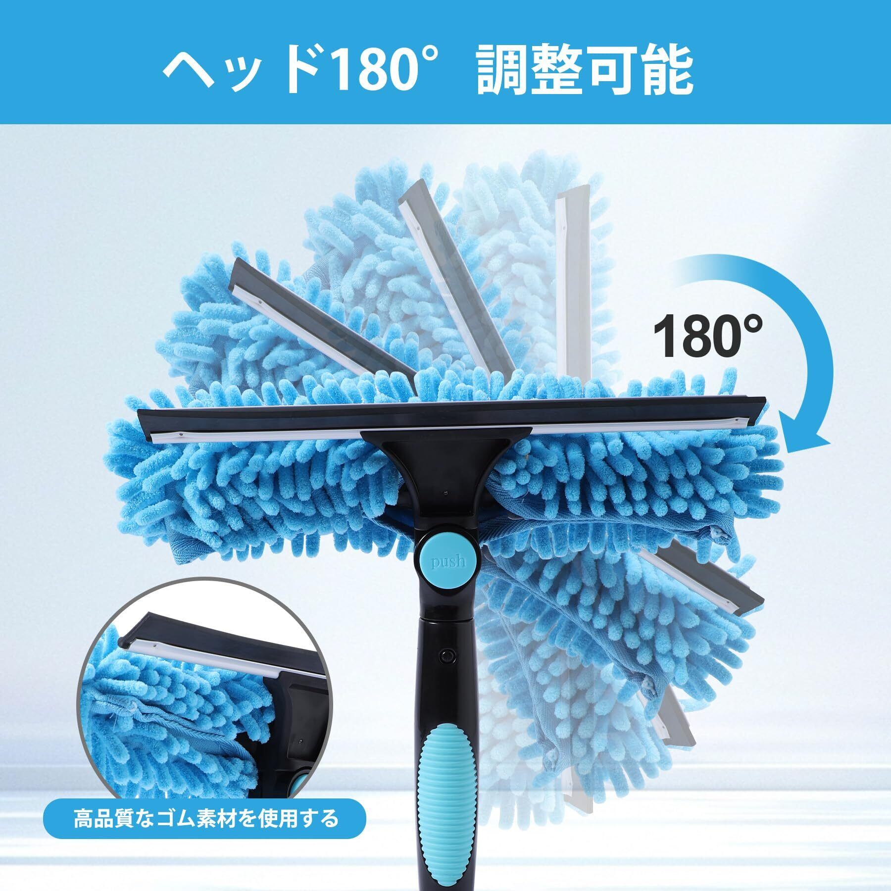【ヘッド180°調整可能】:180度回転可能な窓用ワイパーで、角度調整も可能です。窓やガラスの隅々まで掃除することができます。さらに、狭いスペースやベッドとソファーの下、車の洗車などのお掃除に大変便利です。