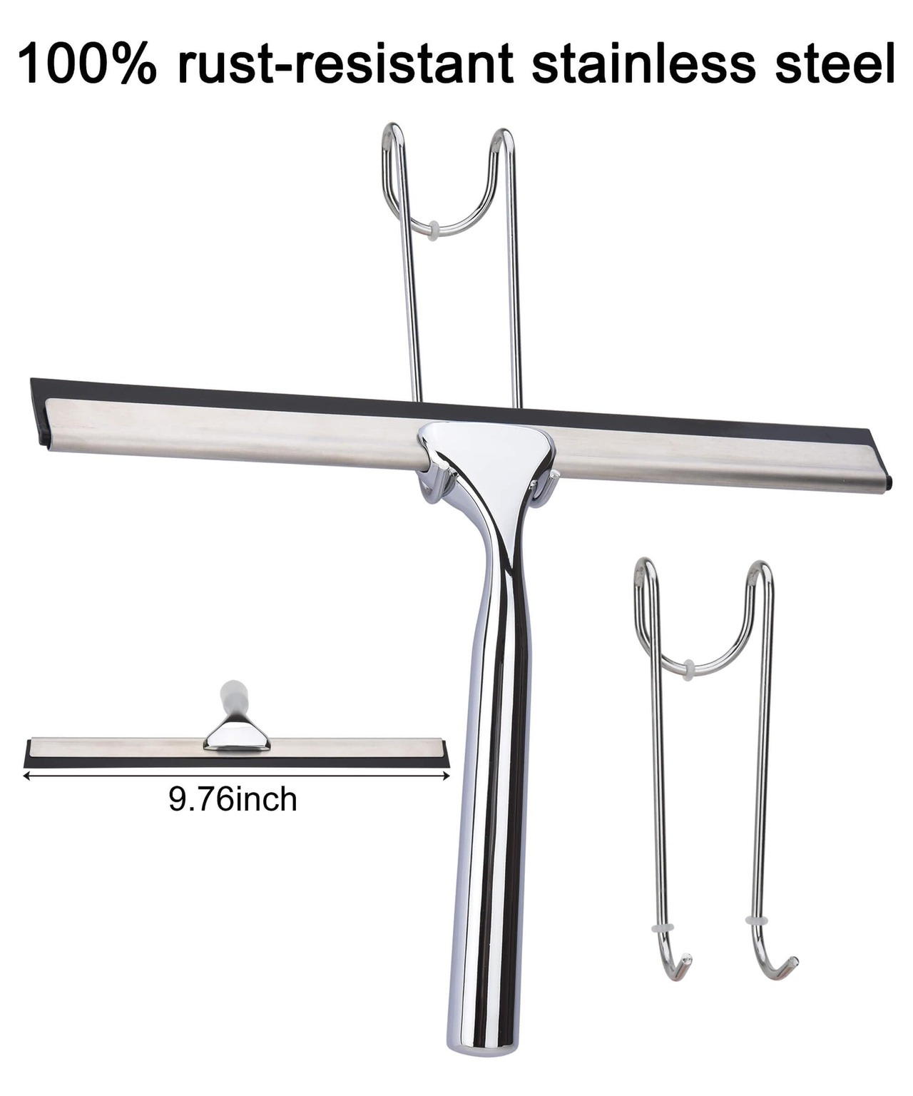 Adjaso 多目的ステンレススチールスクイージー ガラスシャワードア、車の窓、ホームミラー、バスルームクリーナーワイパー用
