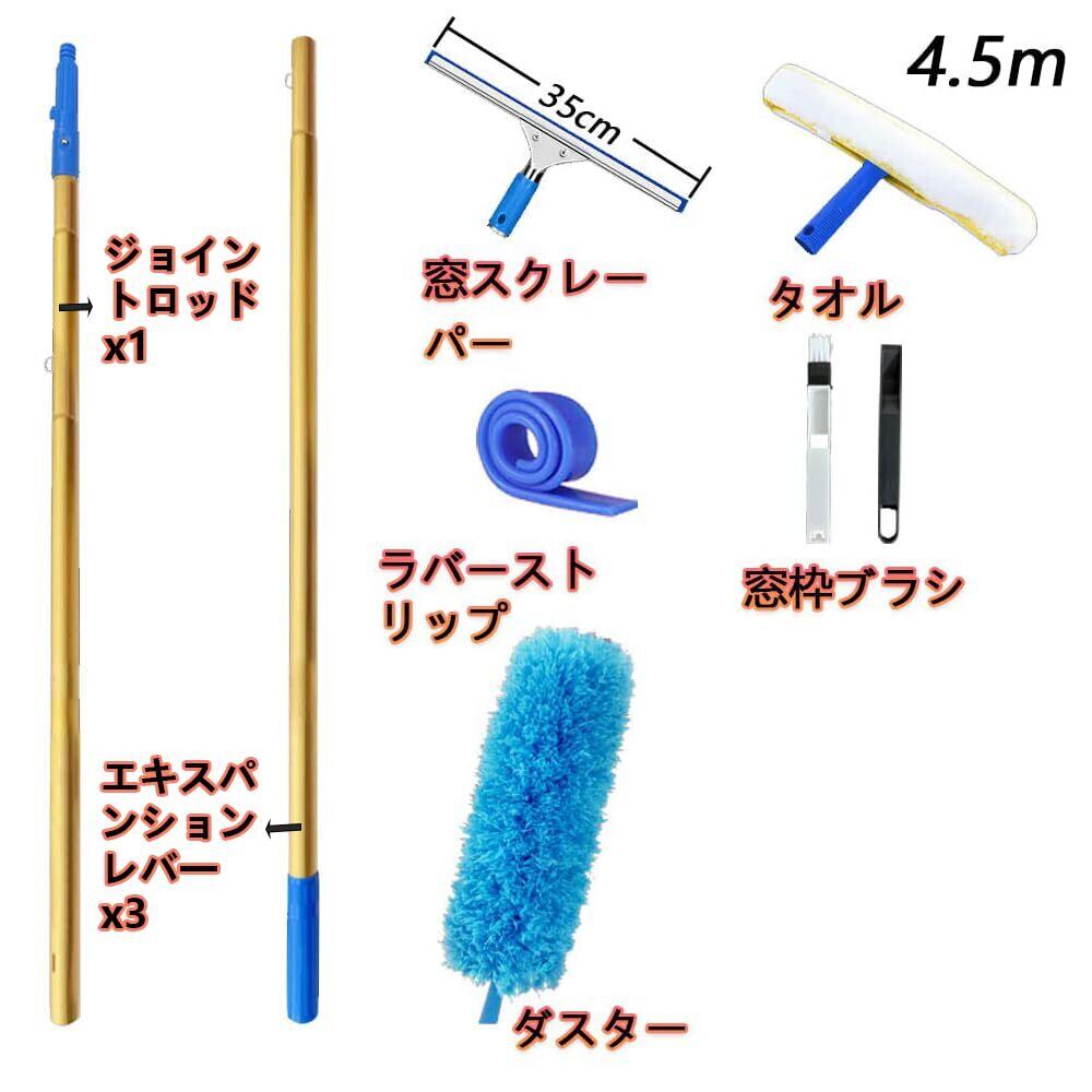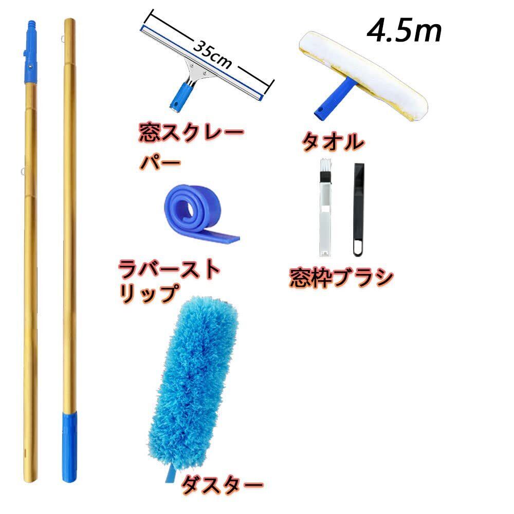 高所 外壁 ブラシ 掃除 窓拭き ワイパー 伸びる ロング モップ 業務用 高所 窓掃除 大掃除セット 交換用ヘッド ングポール 長さ3.5~12.5m つなぎ柄 高強度 ガラス、看板、車の床や壁の掃除に適しています 4.5m