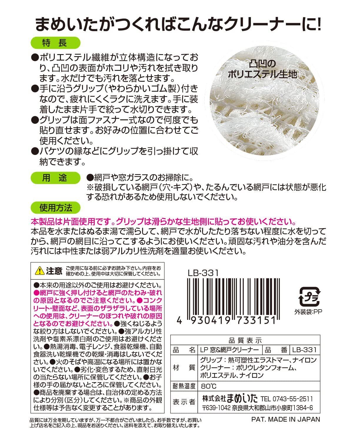 【数量限定】まめいた(Mameita) 窓 網戸 クリーナー ホワイト 日本製 水だけで洗える ポリエステル繊維 幅9cm×奥行15.8cm×高さ4.5cm LB-331