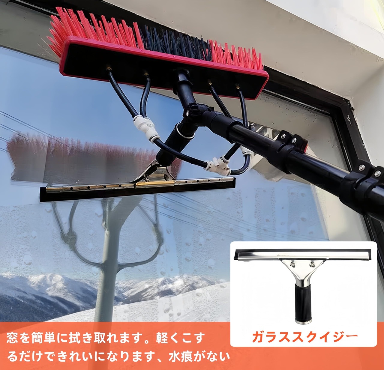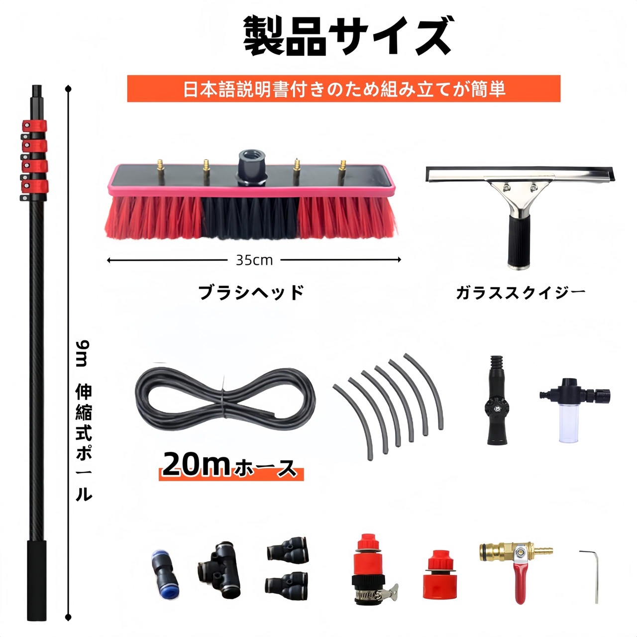 TUIYIDUO 高所掃除ブラシ 給水伸縮ブラシ 35cmブラシヘッド 高所ワイパー 超ロングポール 高強度 外壁掃除 業務用 軽量 取り外しが簡単 太陽光パネル洗浄ツール 大掃除セット窓/天井/ガラス/壁など掃除用 日本語説明書付き (9メートル)