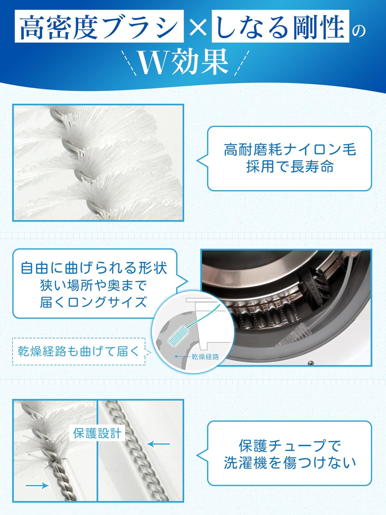 ✨【プロ推奨の高密度ブラシ】洗濯乾燥機専用お掃除ブラシ(ドラム式・縦型洗濯機両方とも使用可能)