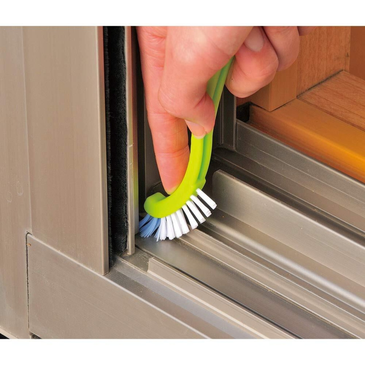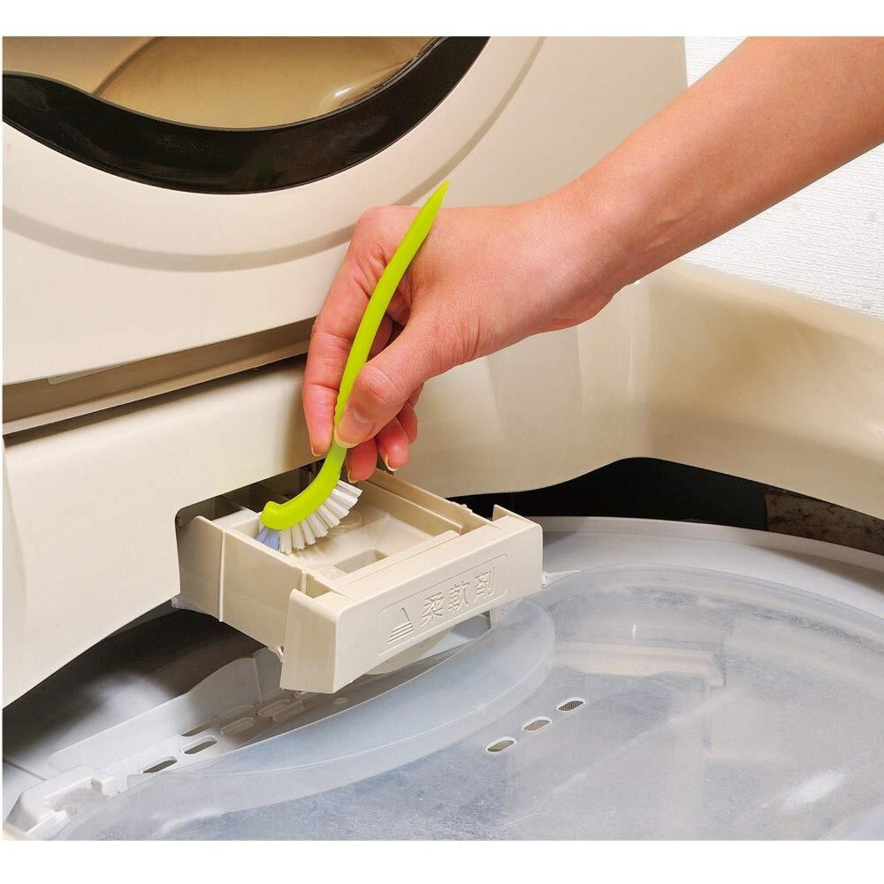先端の硬めブラシが角の汚れをかき出します。
