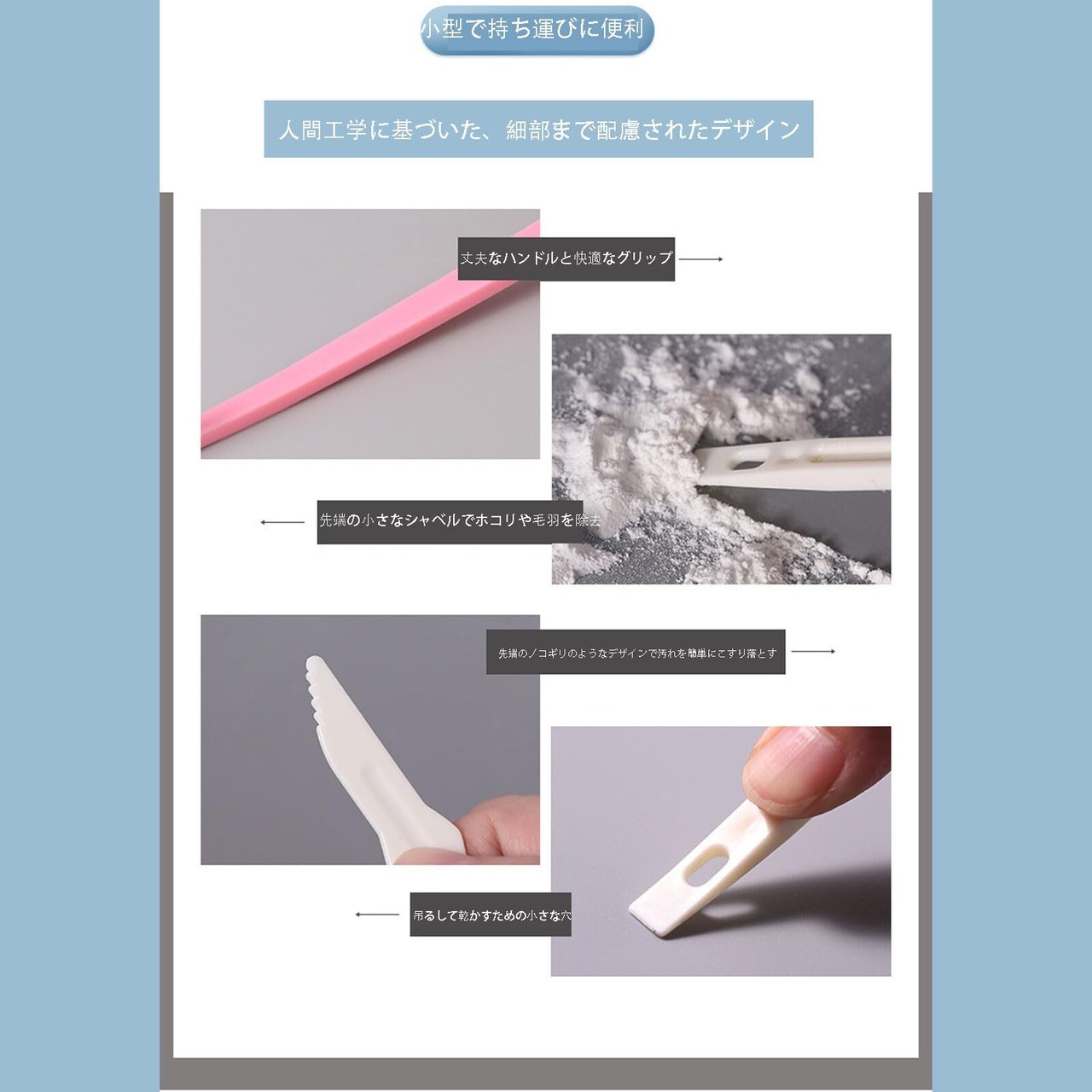 【便利な収納】当社のブラシは小型で収納が簡単です。引き出しに収納したり、フックに掛けたり、カップに入れて保管したりできます