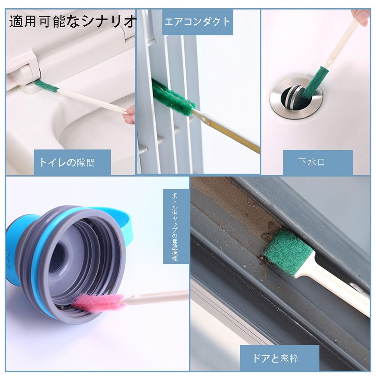【商品仕様】内容量:10本入りグリーン+10本入ピンク合計:20本入; 隙間掃除ブラシから奥まで届くブラシまで、ご家庭のほとんどの場所を簡単に掃除できます。隙間ブラシは手が届かな狭い所に溜まった汚れ・カビ・埃の掃除に大活躍