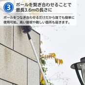 【簡単に最長3.6mの長さへ】 ポールを繋ぎ合わせることで最長3.6mの長さに対応できます。延長ポールにねじ込むだけだから誰でも簡単に使用できます。
