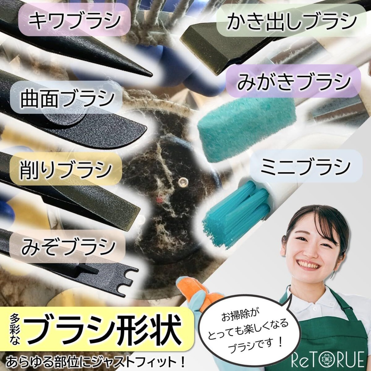 【機能性】ブラシ11本、形状は22種!「掻き出し」「削り出し」「狭いスキマ」「ミゾ」あらゆる部位にジャストフィットします!