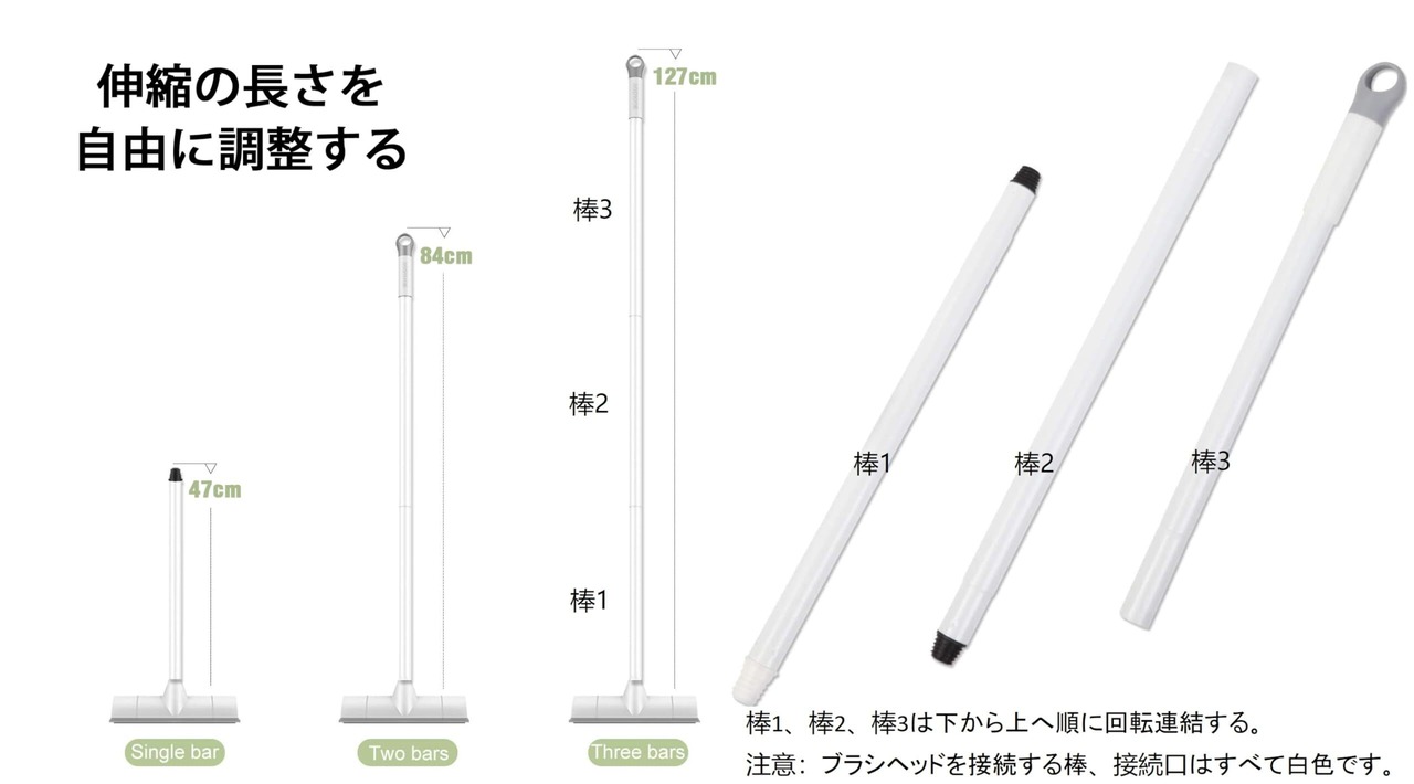 【デッキブラシの規格】掃除ブラシのサイズ:25*47cm-127cm、素材:ブラスチックロッド、鉄ポール、植毛ブラシ、ゴム刃。【注意】図2にはデッキブラシの取り付け方法があり、デッキブラシヘッドと棒1が接続されているねじは白色であることに注意してください。