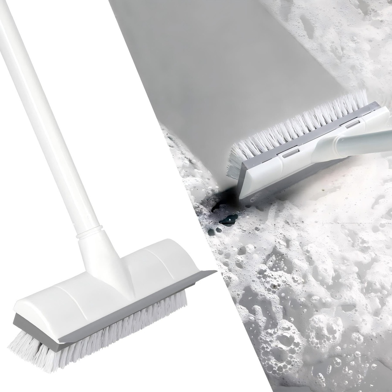 【2025最新】CLEANHOME デッキブラシ 掃除用ブラシ 2in1 水切りワイパー タイルブラシ 3段ポール 長さ調節可能 47cm-127cm ベランダ/玄関/床/庭園にも適用 掃除用品 風呂掃除 【耐久性MAX】 (ホワイト)