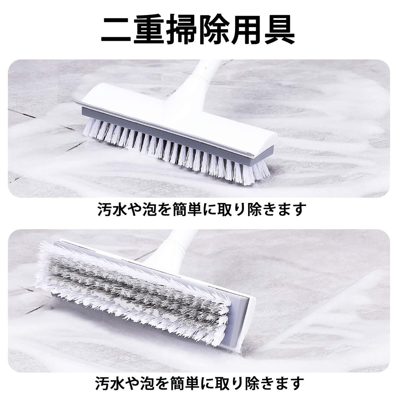 【2 in 1水切りワイパー&デッキブラシ設計】デッキブラシとしてだけでなく家庭を掃除することができます。水切りワイパーとしても活躍します。窓、壁、鏡、地面、天井を掃除できます。