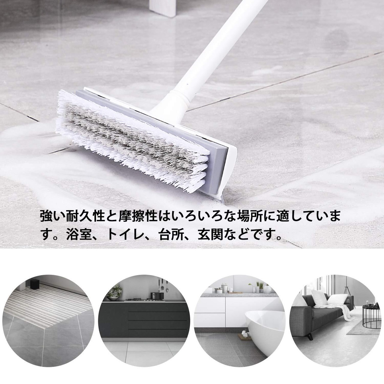 【清掃能力は強い】ブラシは乾いても濡れても使用できます。壁、キッチン、バスルームに使用されるだけでなく、ガレージ、歩道、スタジアムなどにも最適です。 【水に強いPP素材の硬いブラシ】毛先を広げた形状だからコーナー部分もしっかり洗えます。異なる太さの毛のダブル植毛なので、浴室の床の細かい溝にも入り込み、汚れを掻き出します。