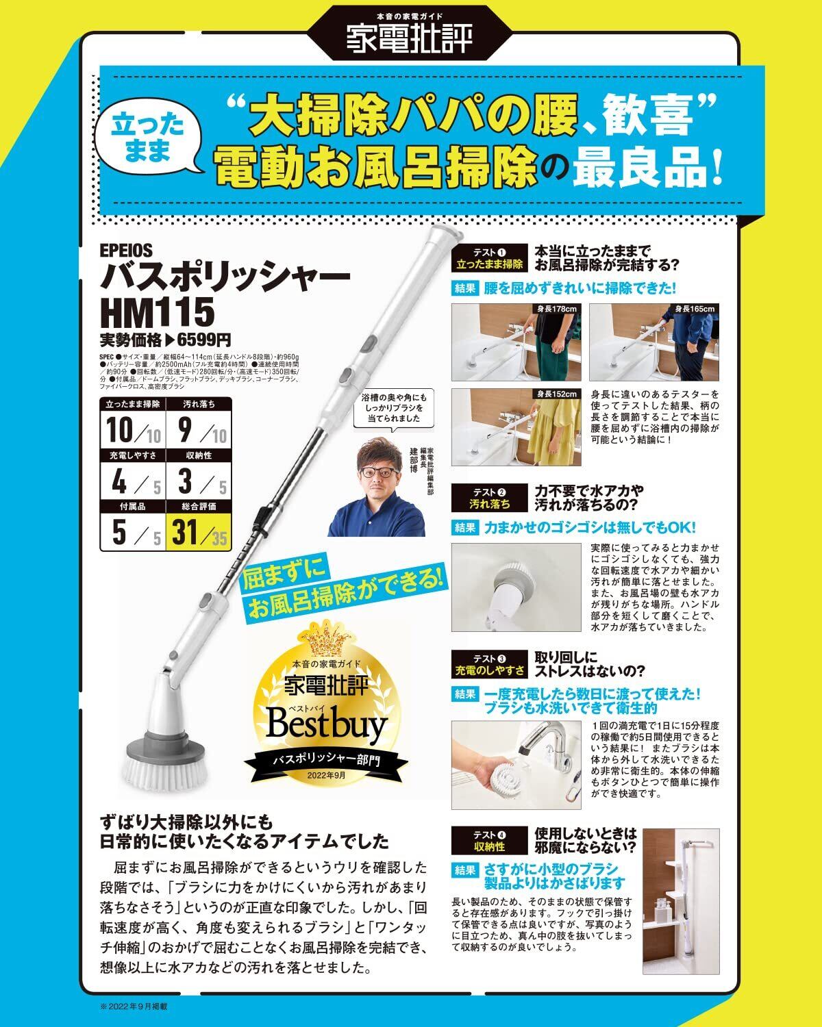 【限定セール】【「家電批評」バスポリッシャー部門 ベストバイ】 エペイオス(Epeios)バスポリッシャー コードレス型 電動お掃除ブラシ 充電式 角度調節 11段階長さ伸縮可能 2つ回転モード 2500mAh大容量電池 デッキブラシ お風呂掃除 ブラシ 防水 スティック&ハンディク 手持ち式 7つ取り替えブラシ付き 操作便利 トイレ掃除/床/窓/おふろ/車/ベランダ/玄関の掃除/年末掃除 ギフト