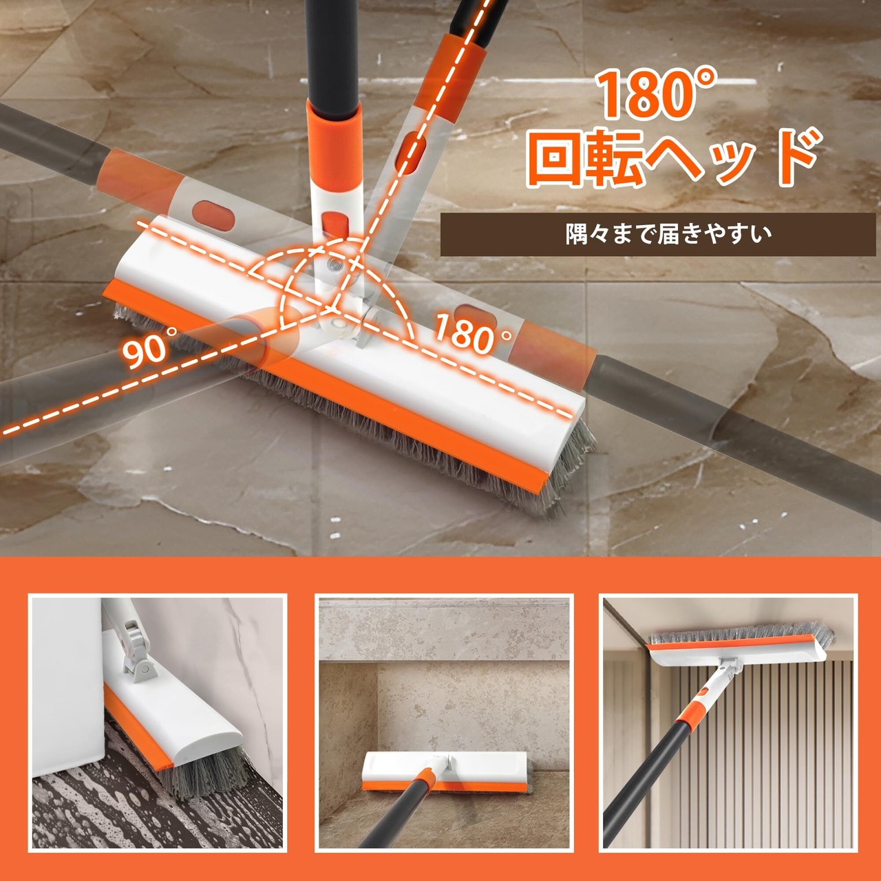 180度機能性洗浄ヘッド:浴室床ブラシには180度回転ヘッドで、隅々まで届きやすい。さまざまな角度から汚れやシミを簡単にかき出します。