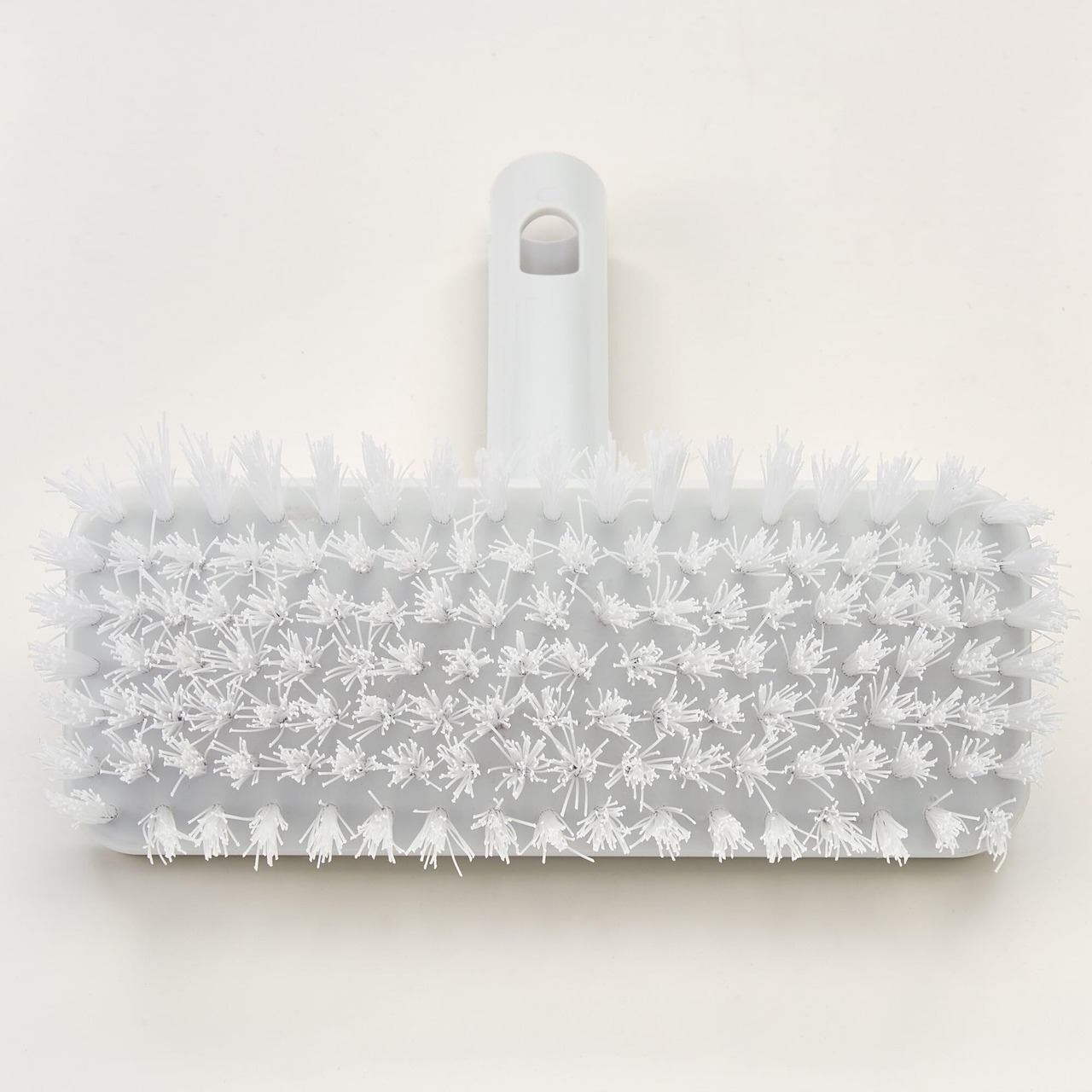 力を入れて洗いやすいよう、柄は固定したタイプのブラシです。ベランダ掃除などに適しています。
