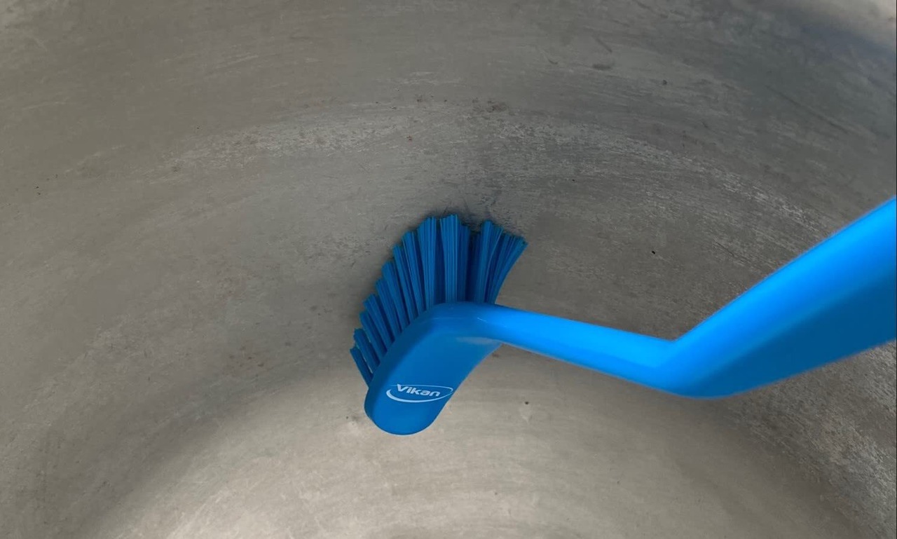 【あらゆる場面の洗浄に役立つ】角度のついた持ち手とくびれ形状のブラシで、凹凸のある部分やアールがかかった箇所の洗浄も容易です。機械周り、パーツ、ザル等の容器など幅広い用途で使用できます。