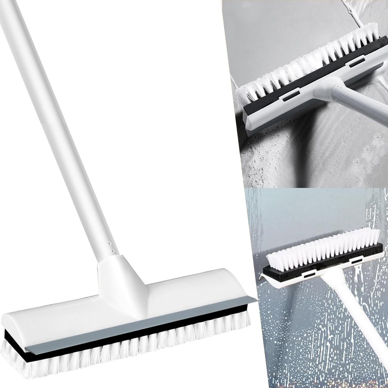 風織商社 デッキブラシ 2in1 水切りワイパー ベランダ 掃除用ブラシ タイルブラシ 屋外 室内 3段長さ伸縮 デッキブラシ 風呂掃除 耐久性MAX 浴室/風呂場/ベランダ/玄関/床/庭園/歩道用 掃除用品 家庭用 業務用 掃除ブラシ