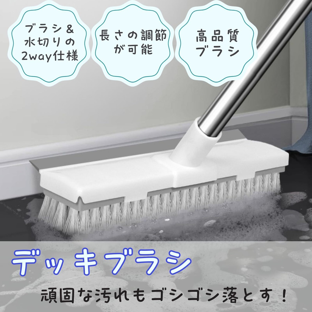【限定セール】ALL Trusut デッキブラシ 2in1 水切りワイパー ベランダ 掃除用ブラシ タイルブラシ