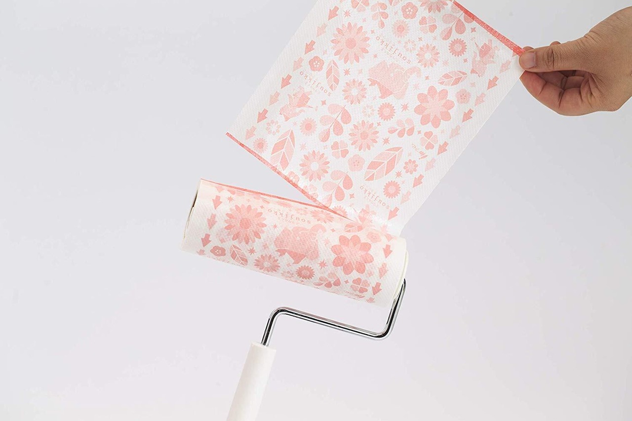 ●「超」強力粘着+凹凸のあるエンボス加工でカーペットやラグのペットの毛、髪の毛、小さなゴミをくっつけます!