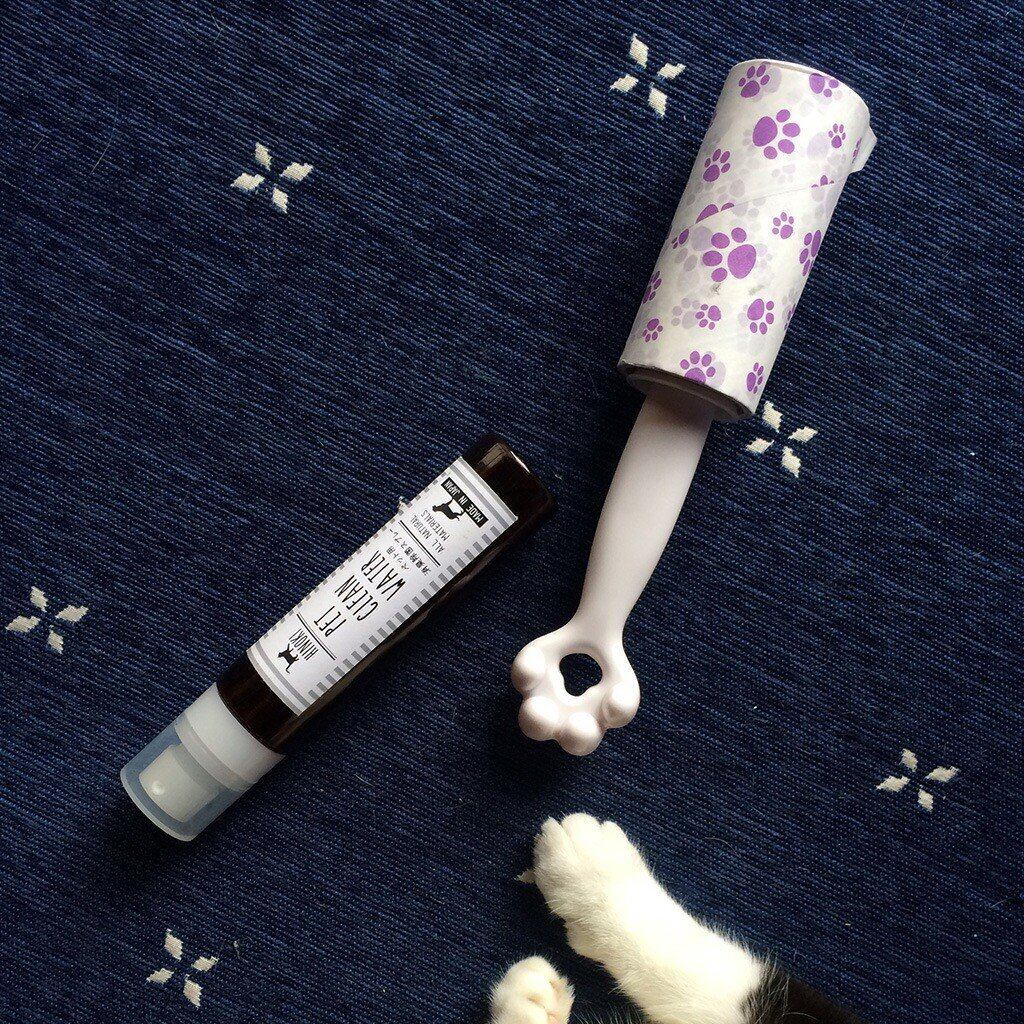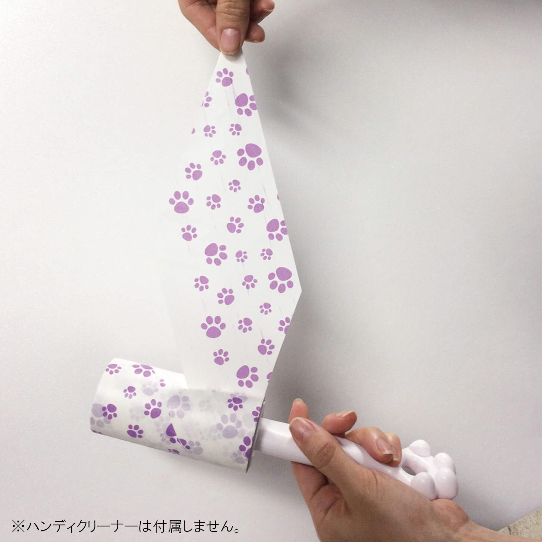 ハンディ粘着クリーナー キャット専用替え用テープ2巻きセット。猫の足跡がデザインされて、切らなくても一枚ずつ剥がせる便利なカット済タイプ。