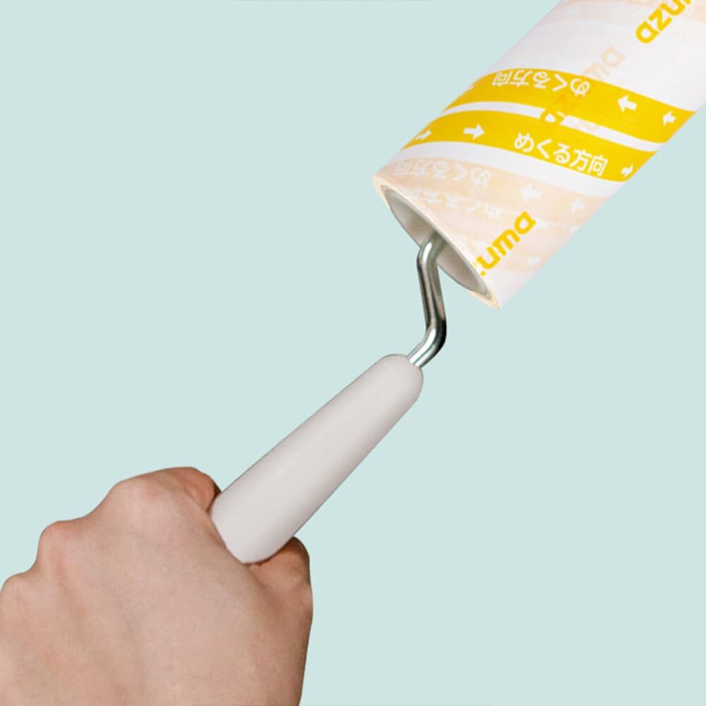 専用スペアテープは不要 ! 各社共通スペアテープが取り付けられる粘着ローラーです。柄が縦についていて、全長約34cmと長いため、背中や肩に届きやすく一人でも背中のお掃除ができます。