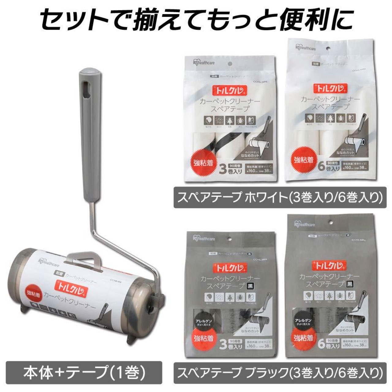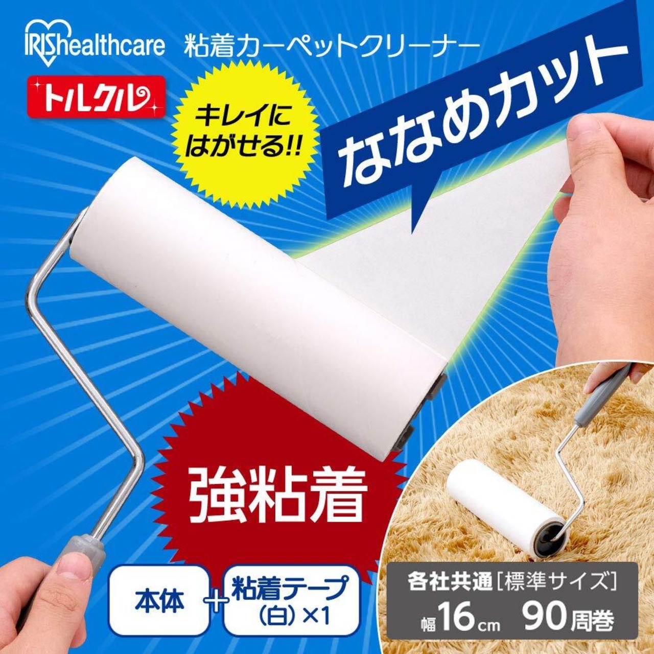 【2025最新】アイリスオーヤマ 粘着クリーナー 本体 強粘着 テープ幅16㎝×90巻き ななめカット ホワイト トルクル カーペットクリーナー CCHB-RN