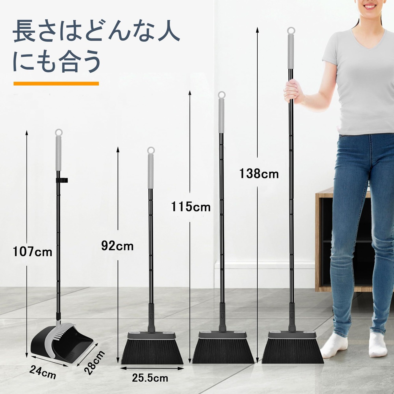 【新着商品】JEHONNほうき ちりとり セット室内 屋外, 138cmロングハンドルホウキ ちりとり セット軽量180度回転自立掃除道具, 防風塵取り室内玄関ホーム庭園ショッガーデニング(黒とグレー)