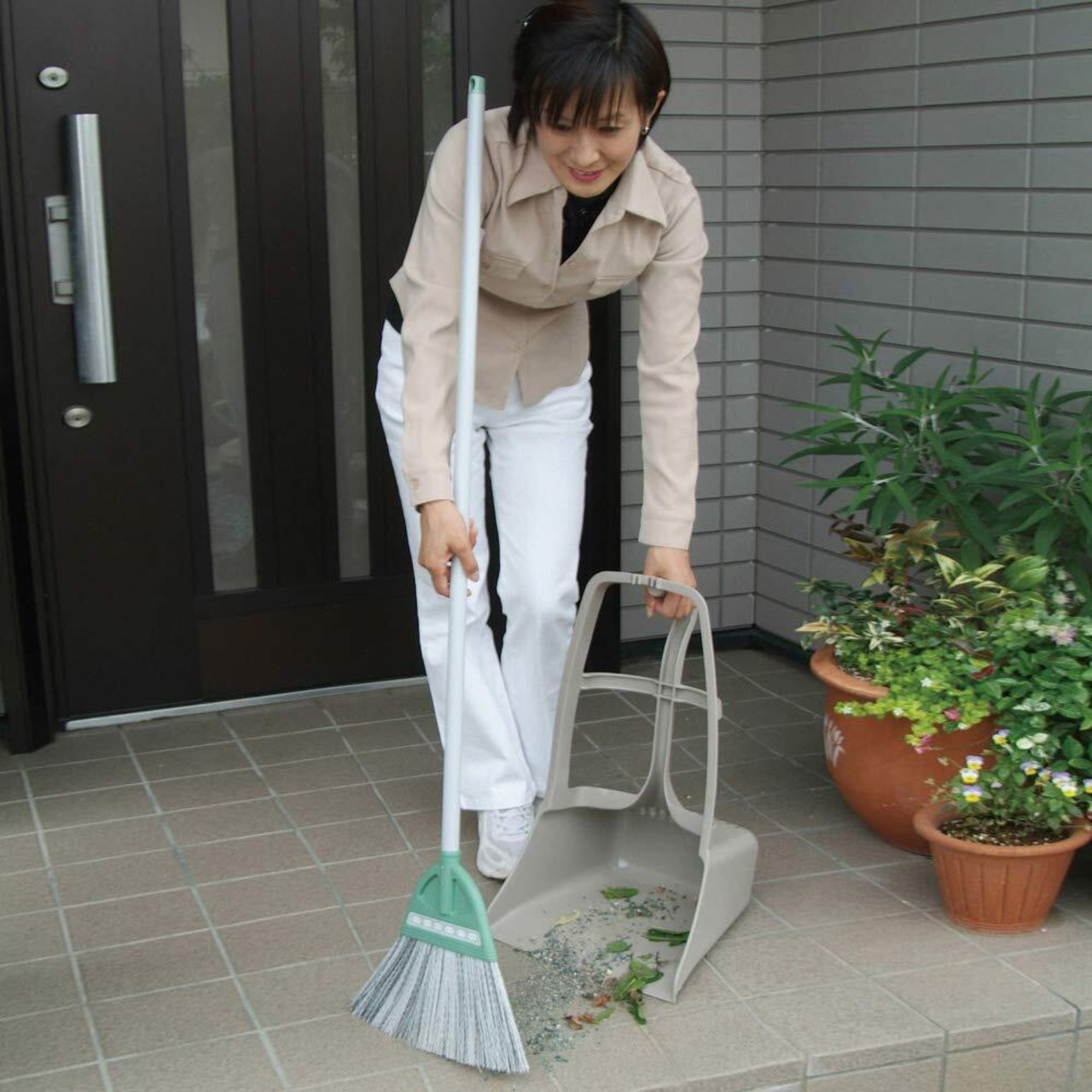 【ほうきを収納できる】カチッとはめるだけで、ほうきがチリトリにセットできるので、持ち出しや収納に便利です。