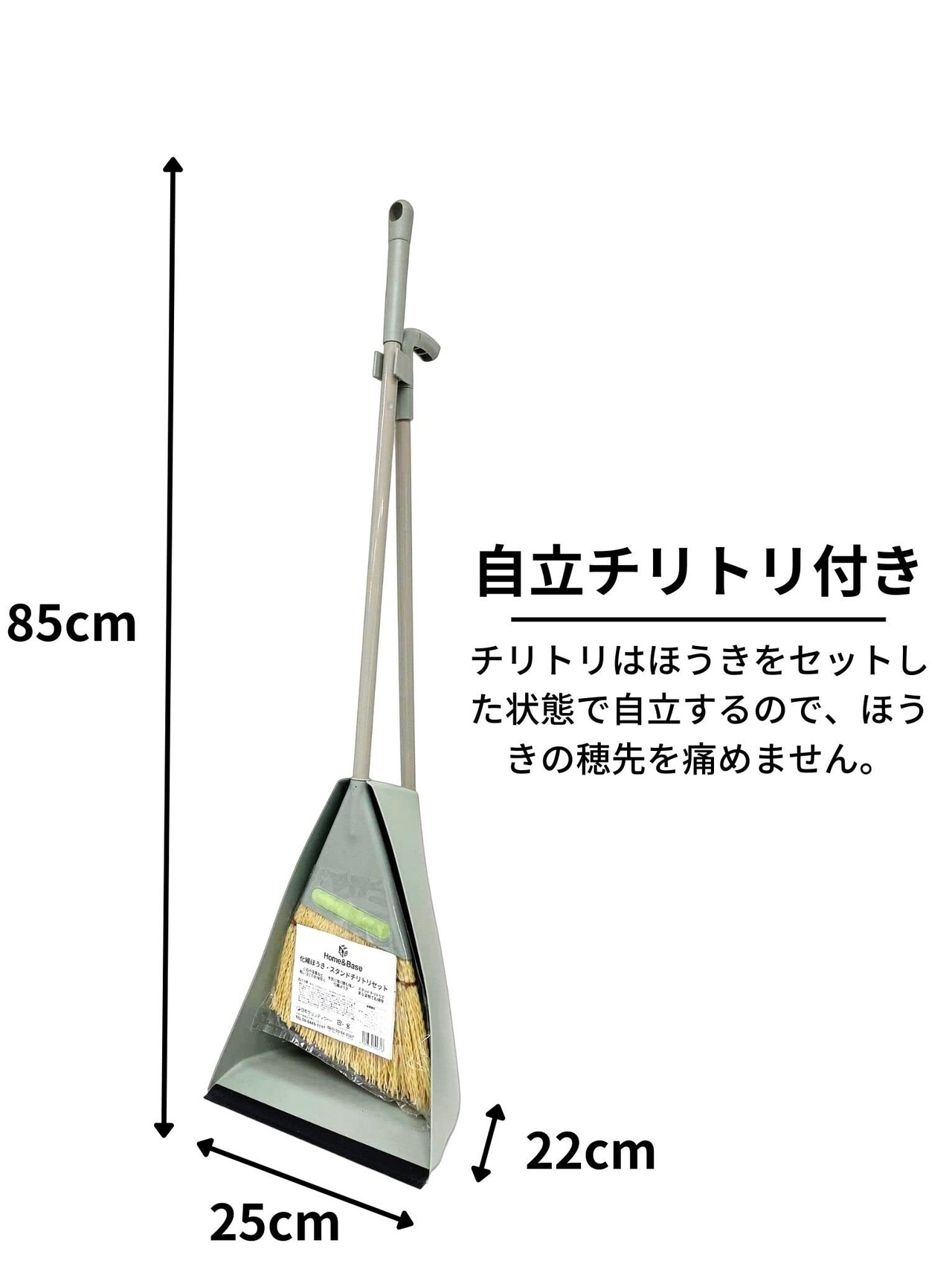 ほうきはちりとりと一緒にすることで自立するので、穂先を守りながら収納できます。