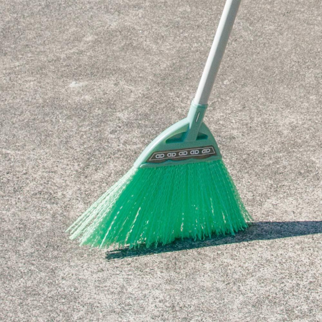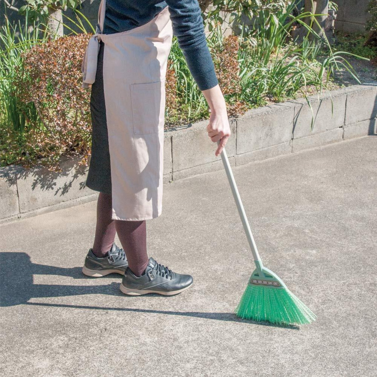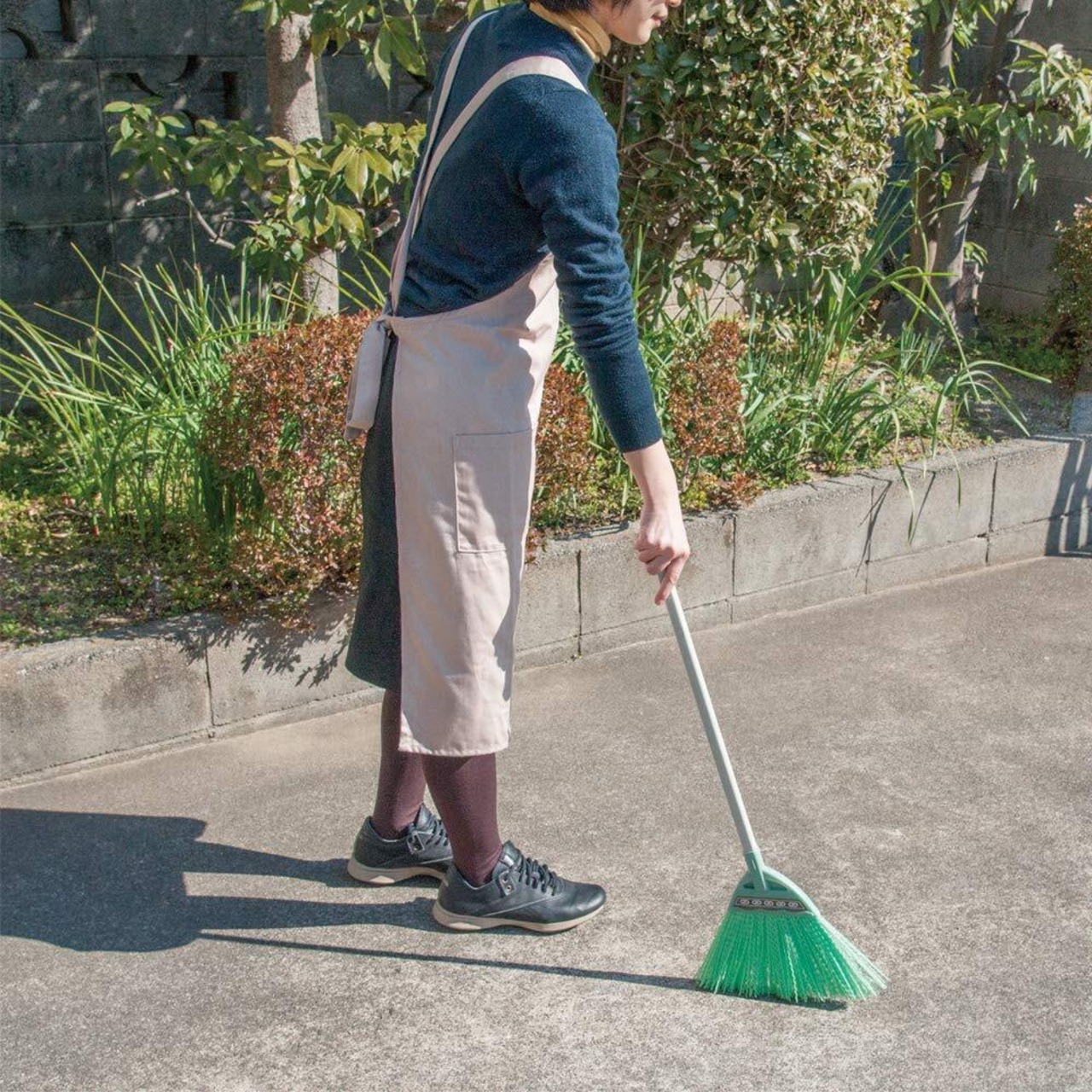 耐久性があり水に強くコシのある化繊ほうき。短柄タイプ。