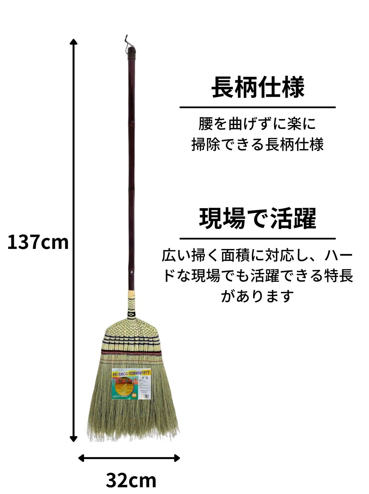 日本クリンテック 手編み座敷ほうき長柄 幅32cm 全長137cm 屋内外 天然繊維 手に馴染む 床面に優しい ホコリから粗ごみの掃除