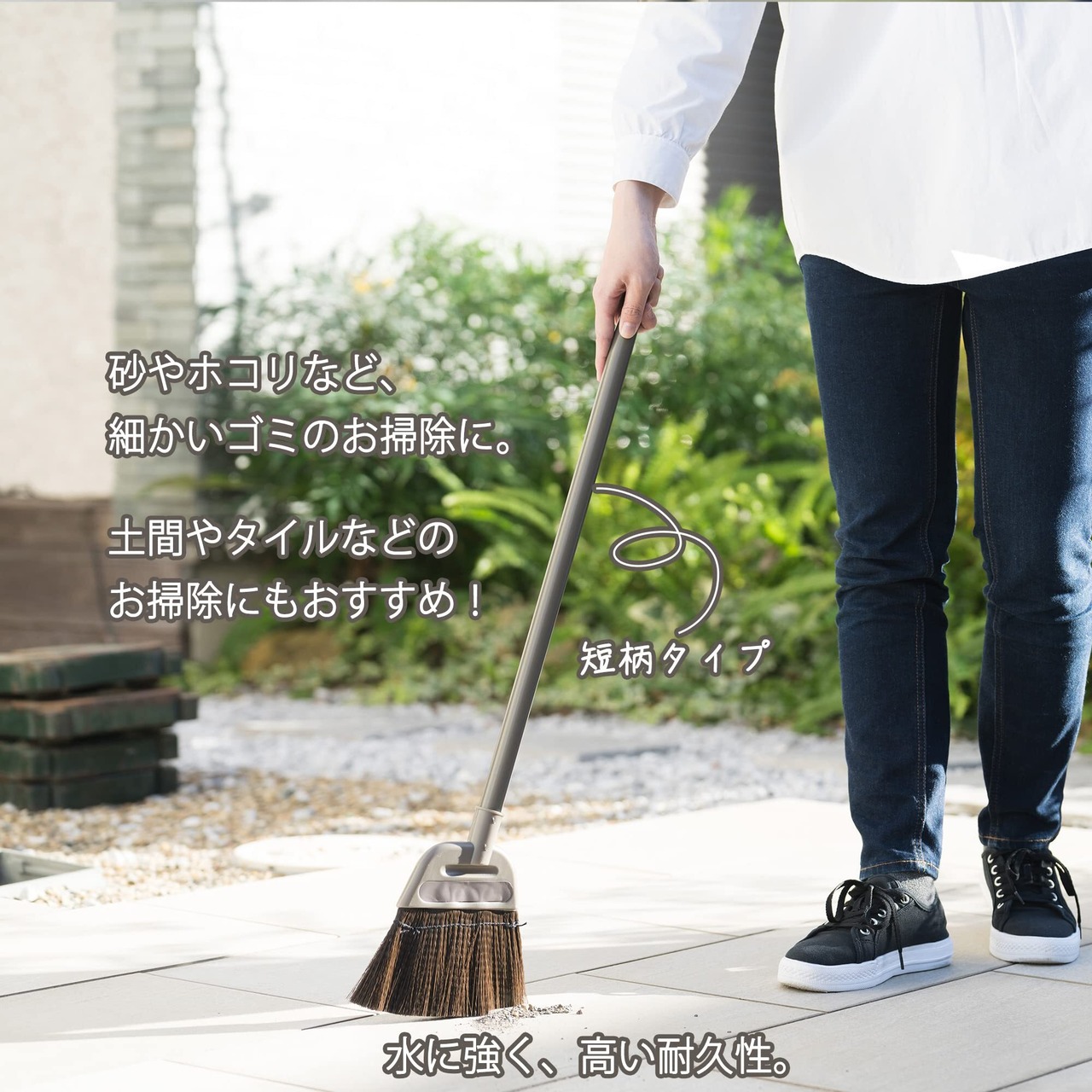 日本製 独自の細繊維で、水に強く耐久性の高い短柄ほうき。