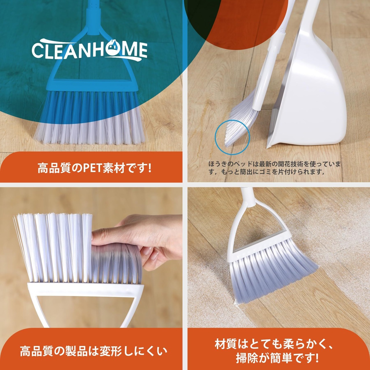 【品質高いほうきちりとり】ほうきはPET柔軟性の高い毛先に最適です。幅さは16cm範囲で掃除ができます寿命が長く、水洗いもできます。とても便利です。ほうきにはアークがあり、ごみをきれいにしやすく、ちりとりの底は地面に近く、細かいごみをうまく制御できます。数多くの種類の汚れ、ほこり、破片、ペットの髪などが掃除できます。