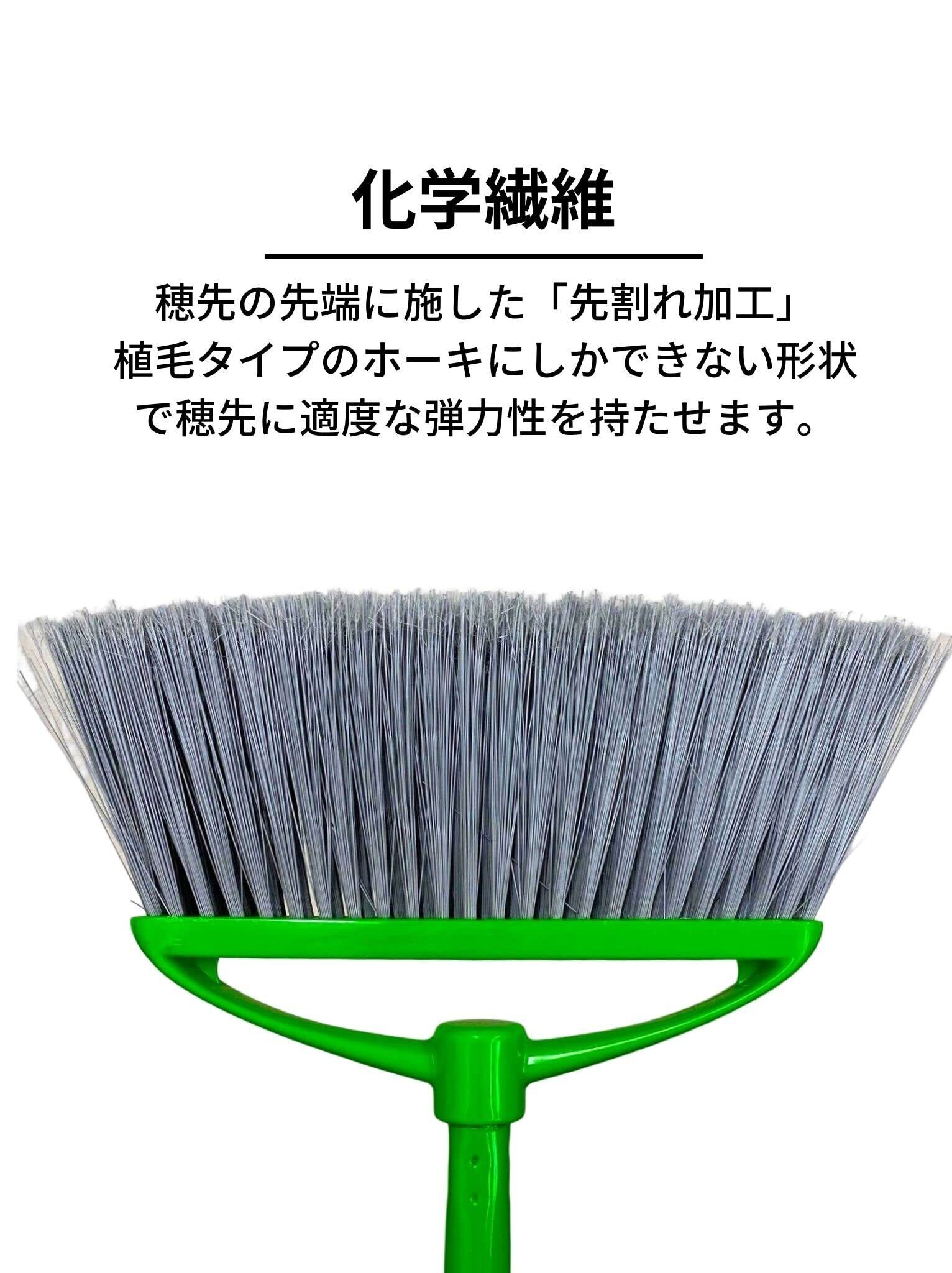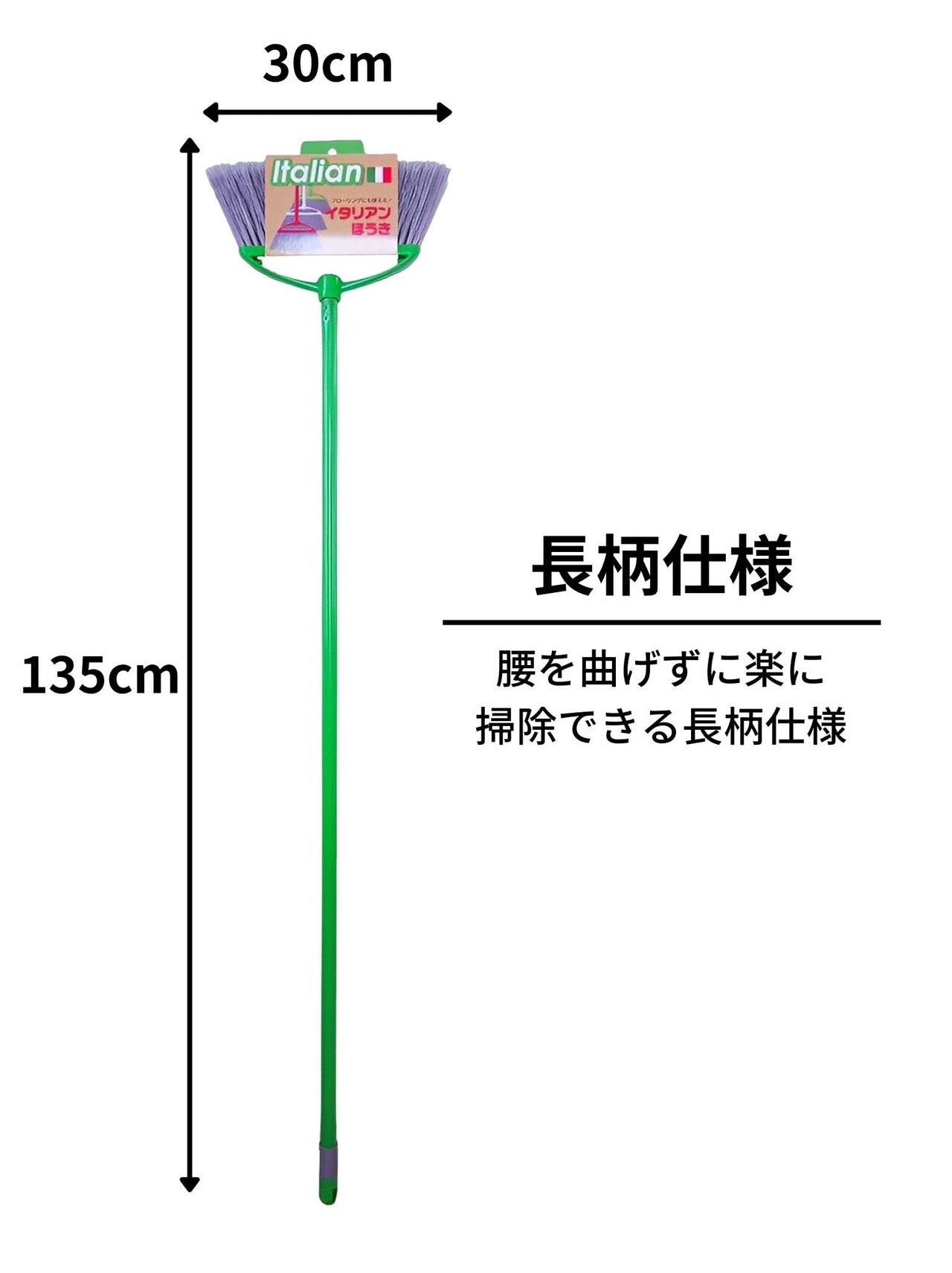 日本クリンテック(Nihon Clean tech) イタリアンほうき グリーン 幅30cm 長さ 135cmイタリア製 屋内外 先割れ化繊繊維 細かいゴミやほこりの掃除