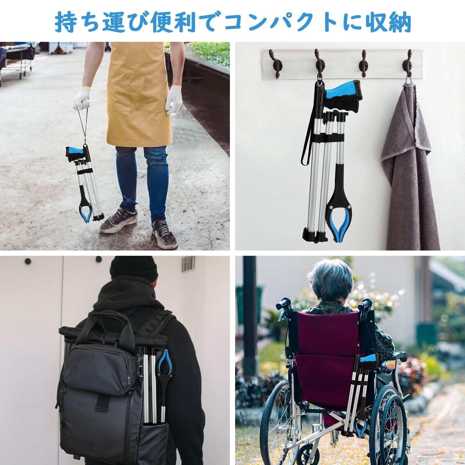 Housolution マジックハンド つかみ棒 ゴミ拾い お助けハンド 全長110CM 耐荷重3kg ロングタイプ マグネット内蔵 3段折りたたみ式 アルミ合金&ABS 先端向き変更可能 Blue