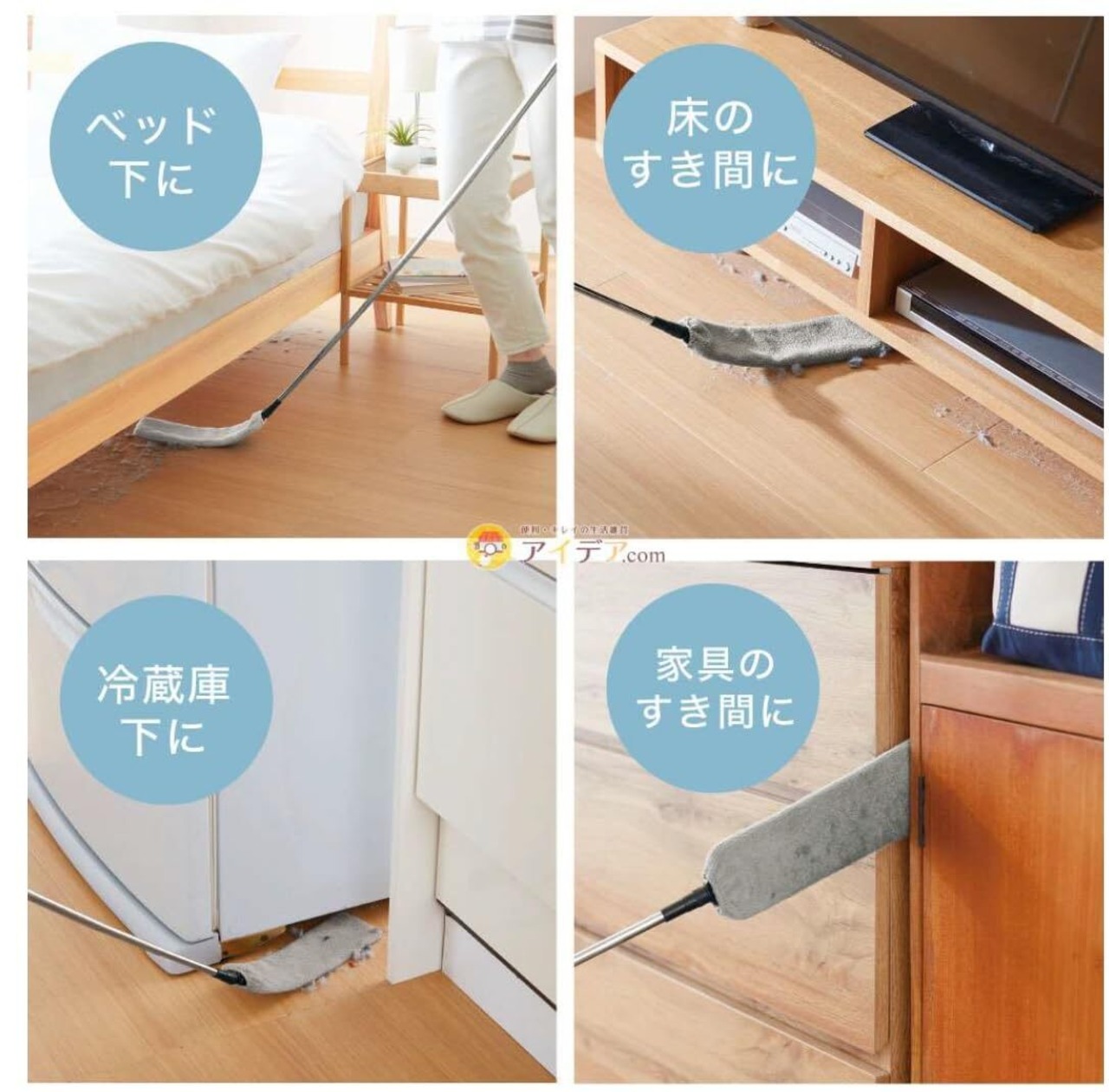 ベット・ソファー下、ワードローブのすき間に。手が届きにくい床・家具のすき間汚れ用。いろいろな工夫が詰まってます。