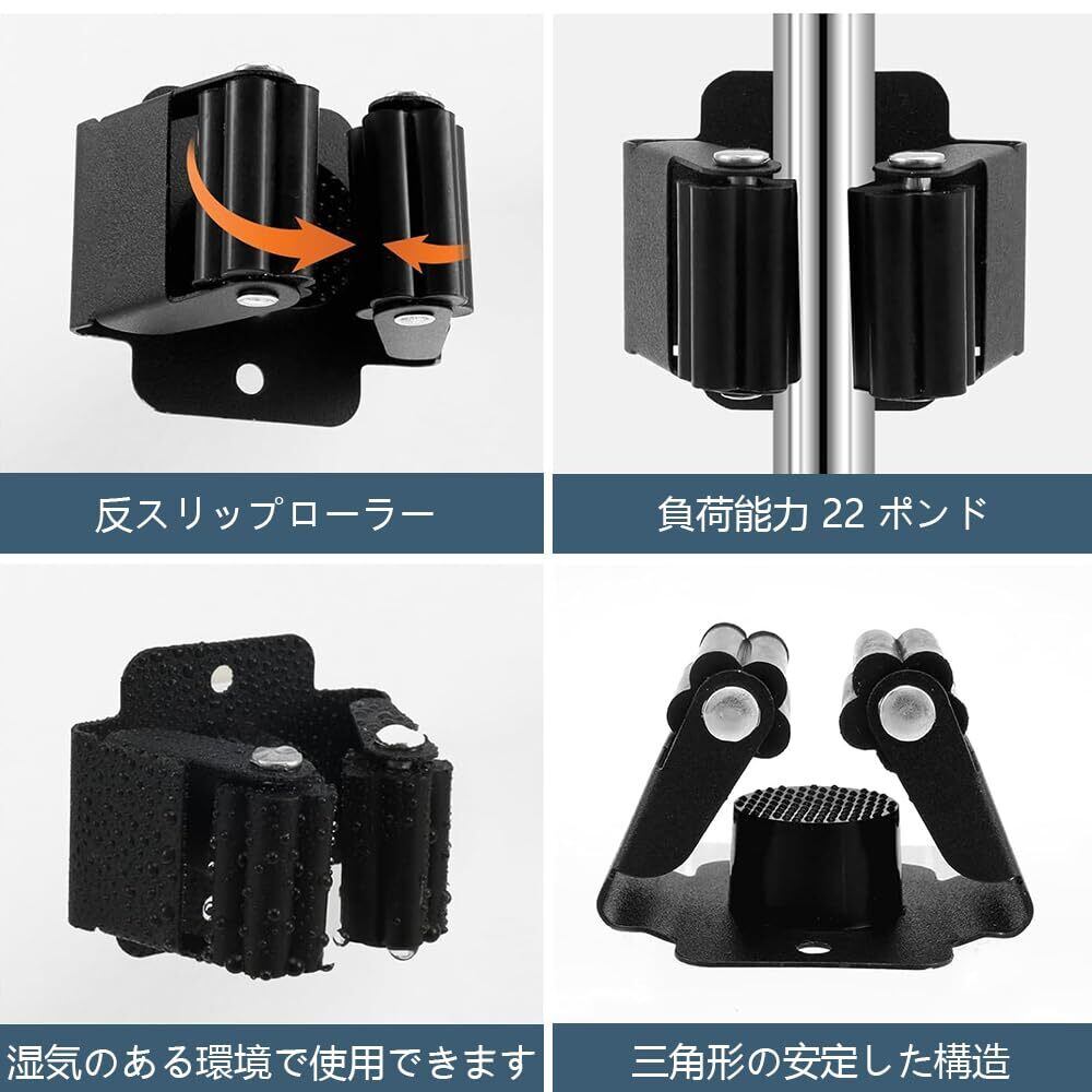 【在庫限り】Selinear モップホルダー 壁掛け 4個セット ステンレス鋼 ツール収納 キッチン お風呂トイレオフィス用 両面テープとネジ付き (ブラック)
